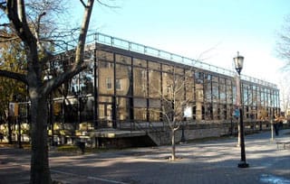 The Breuer art gallery was initially built as a library in 1958 and the space is defined by large inverted umbrellas that were originally conceived as the roof and ceiling to a grand reading room. A curtain wall wrapped around the north and west sides of the building while a honeycomb-like sunscreen ran around the south and east.