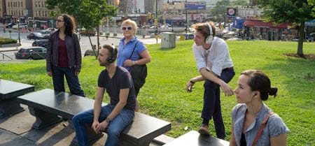Created by members of the prankster pop-up theater troupe Improv Everywhere and audiologist Tina Jupiter, “Audiogram” has participants don mp3 players pre-loaded with sound compositions designed to heighten awareness of city’s latent audio background. Wandering around the neighborhood’s Joyce Kilmer Park, we will be led on a sensory journey through city space.