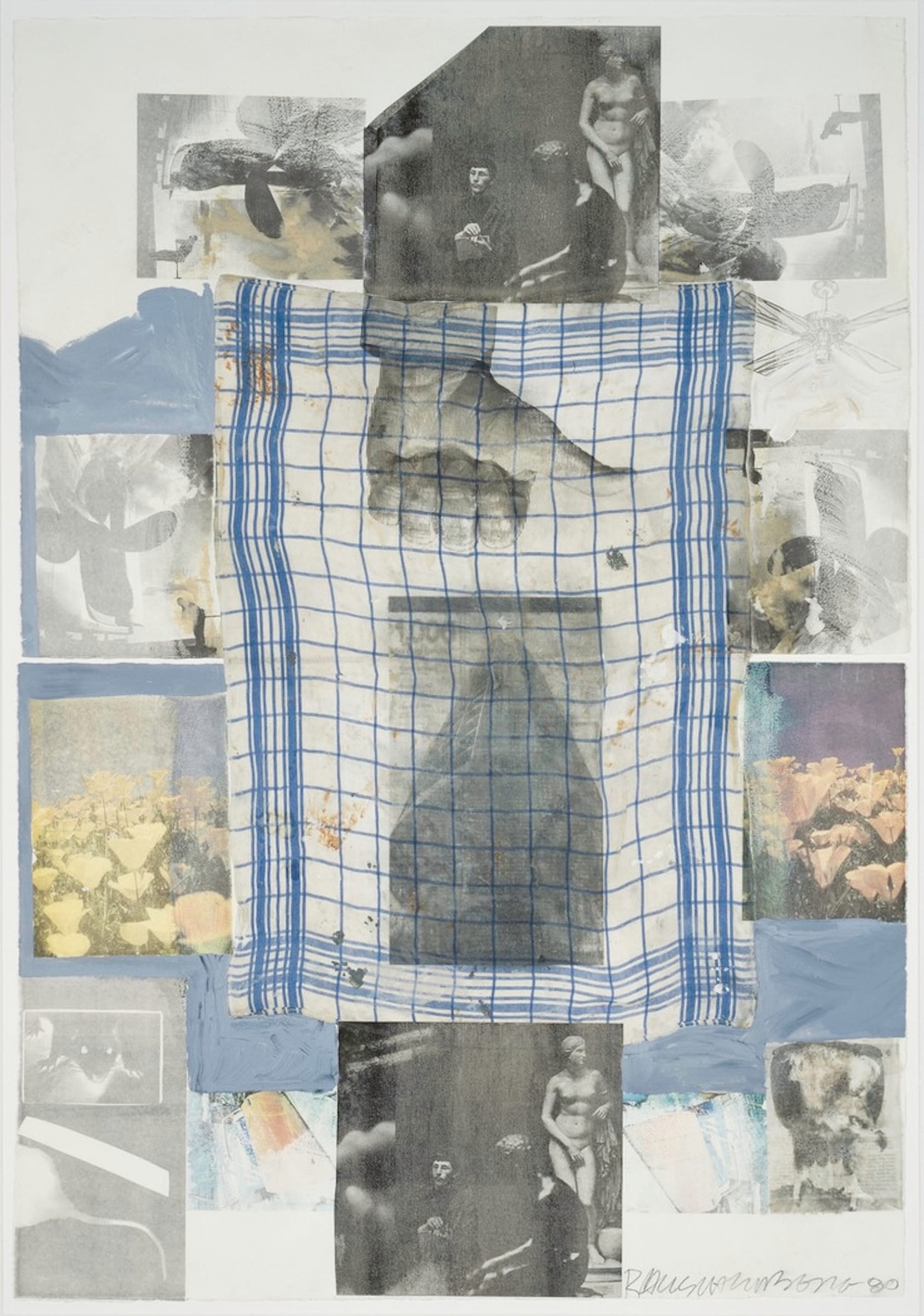 Originally from Texas, where he was raised with no formal art training, Rauschenberg is considered a pioneering figure of Pop art whose work was defined by his groundbreaking use of materials that challenged established notions of art disciplines — namely painting and sculpture. He is particularly remembered for his Combines series (1954–64), which integrated found objects and real-world images with abstract painting, and his collaborations with dancers, musicians, writers, engineers, and other artists.