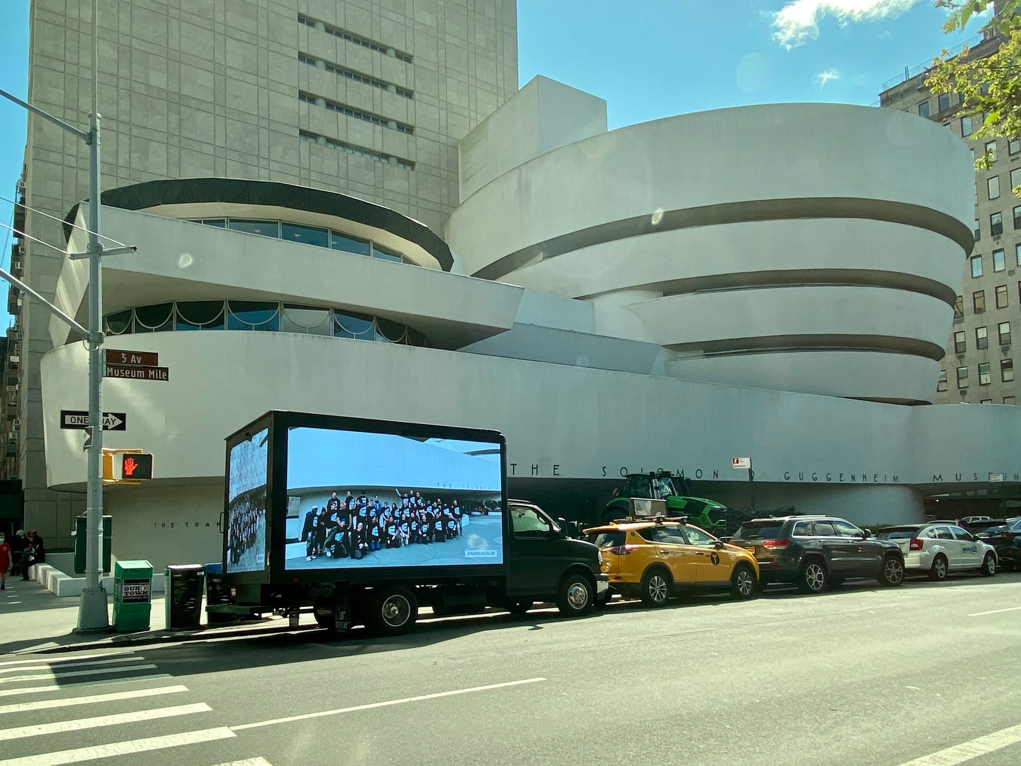 Today, September 30, a truck loaded with digital screens parked in front of the Guggenheim Museum in New York and blasted Fifth Avenue with Led Zepplin’s 1970s hit “Kashmir.”