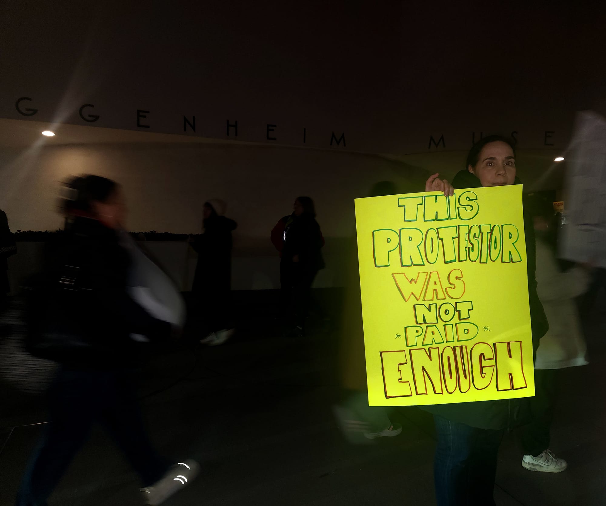 As nighttime rolled in and museum guests spilled out of Ubers and taxis in front of the museum, a good number of them accepted the union flyers that were being passed out. In the line for entry, attendee Maggie Heath said they were glad that the union “was ensuring visibility on a night like this, when there's definitely lots of millionaires here tonight.”