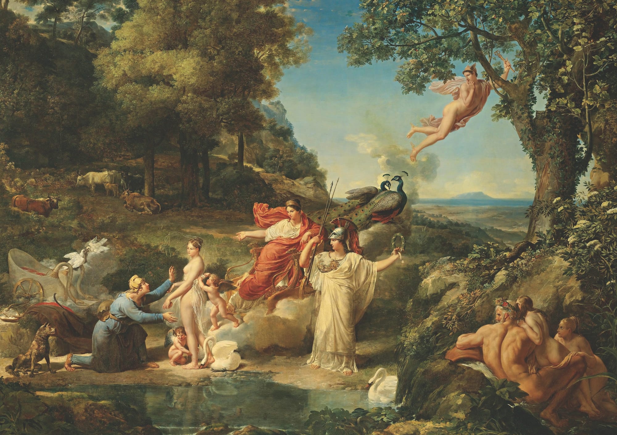 Curators are keen to interweave Lethière’s biography with the political, social, and racial tumult that unfolded around him. Other detours, for instance, foreground the violence that permeated the time period, namely the French and Haitian Revolutions (1789–99 and 1791–1804). This movement between the artist and his greater sociopolitical context reinforces the significance of his ability to navigate these fluctuating systems and still find success. Lethière’s work as an abolitionist, for instance, is apparent in the show’s pièce de résistance, “Oath of the Ancestors” (1822). Though it was unable to be transported to the Clark at the time of the opening, a backlit reproduction stands in its place like a brilliant beacon.