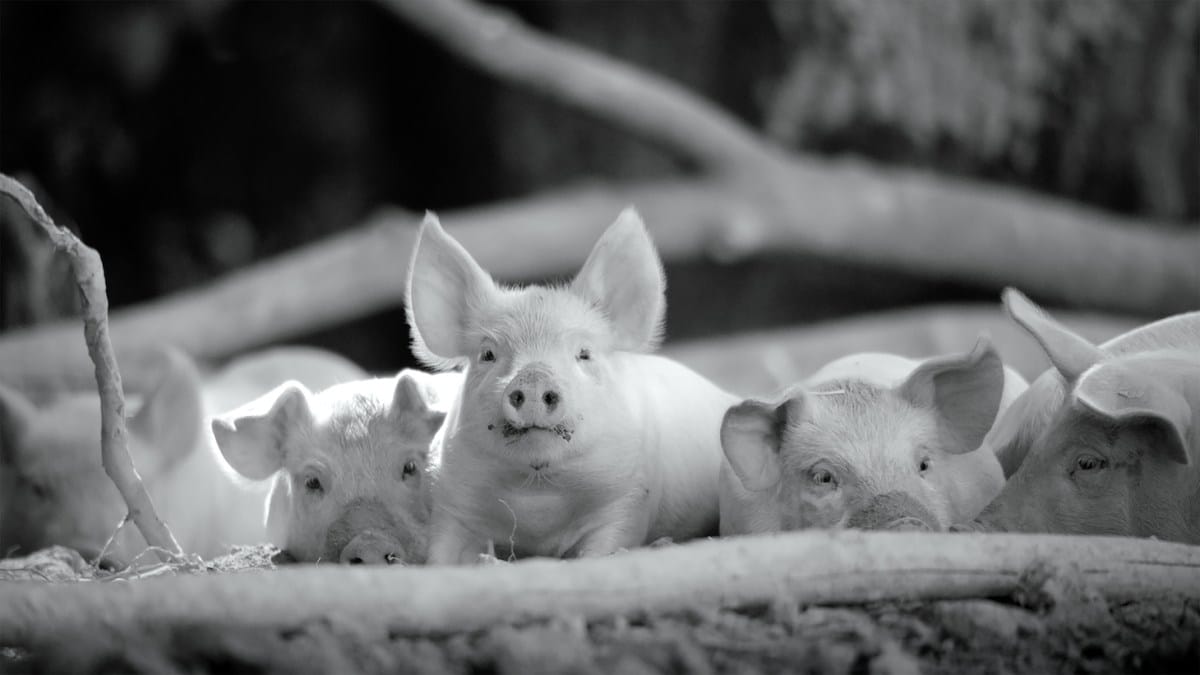A pig dozes on a hill of hay, her snout protruding outside the shelter door, her body curled in the dark inside. Birds tweet as the pig snores. A few seconds later, a handful of hamster-size squealers spill out from the pen. This pig wasn’t sleeping at all, but rather giving birth to a dozen piglets. Inside of the sty, the slimy little buggers clamor at their mother’s straw-strewn nipples. They suck as if they are hanging onto life by a thread — because, in fact, they are.