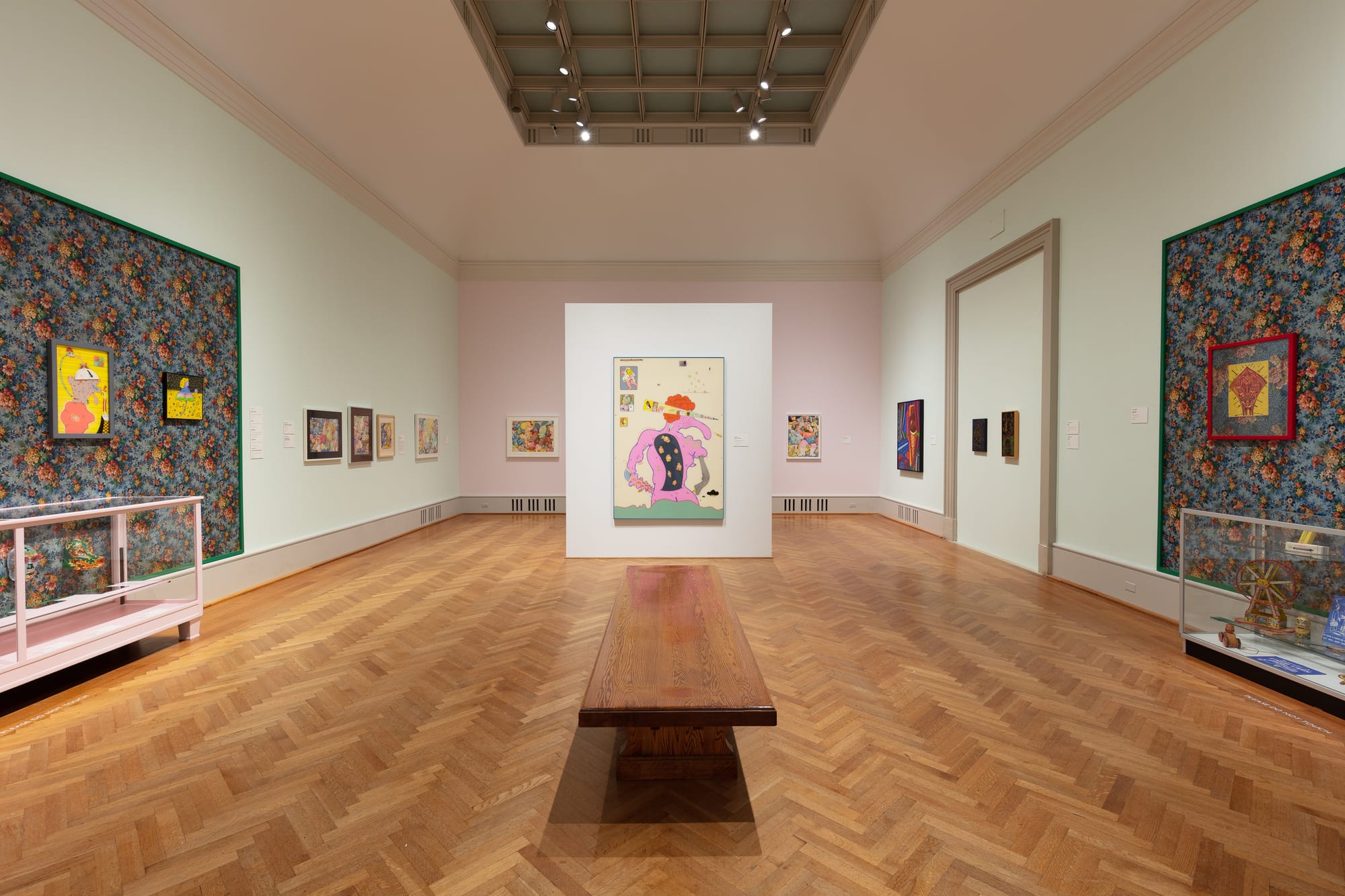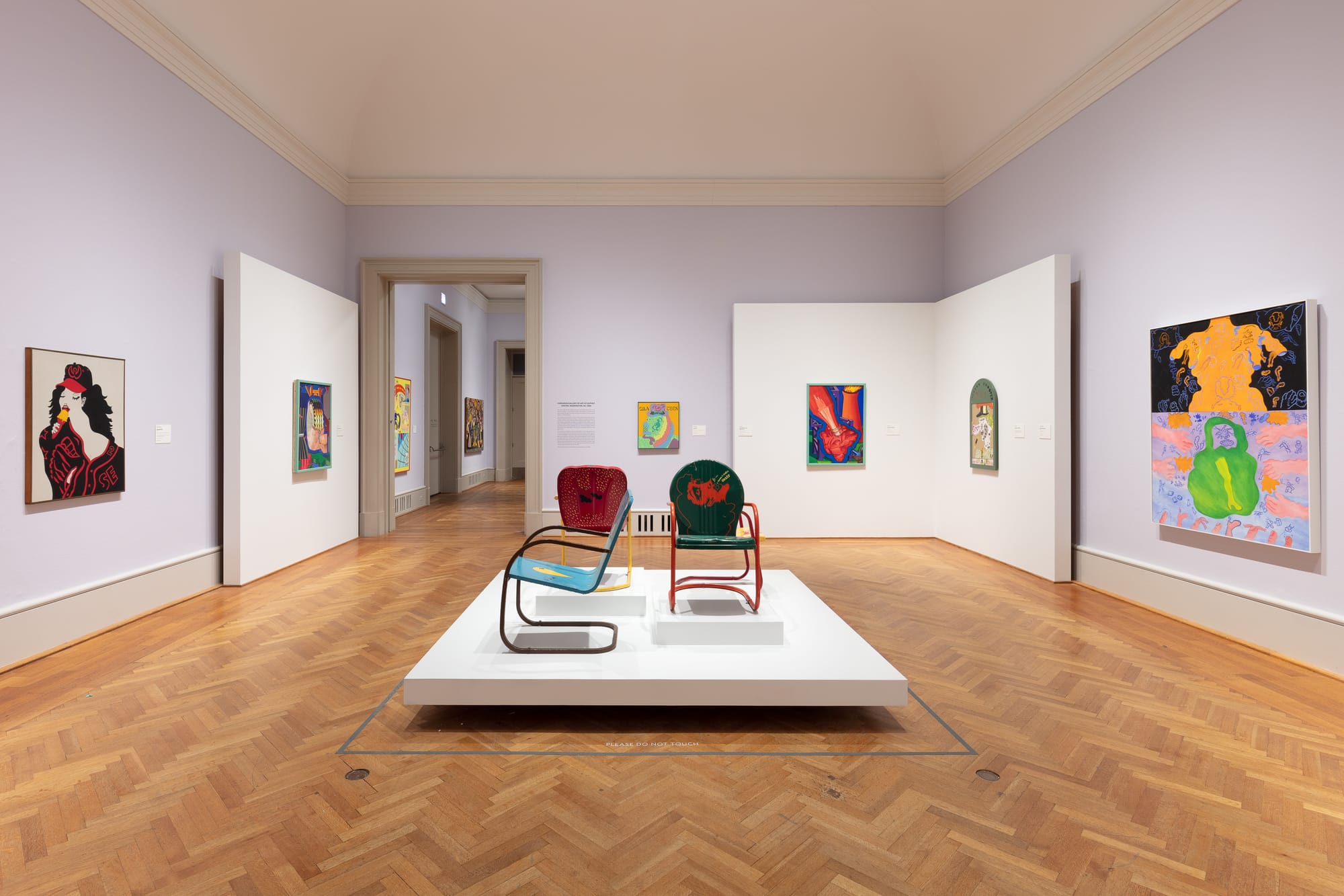 Curators Nichols and Pascale should be applauded for their efforts to recreate the look of the original Hairy Who exhibitions. They have installed works from the different shows in different rooms and, where appropriate, displayed their Maxwell Street finds and hung their paintings against gaudy, patterned linoleum. They have also assembled, in a separate space, a large collection of the posters, price tags, other graphic ephemera produced by the Hairy Who in conjunction with the original shows.
