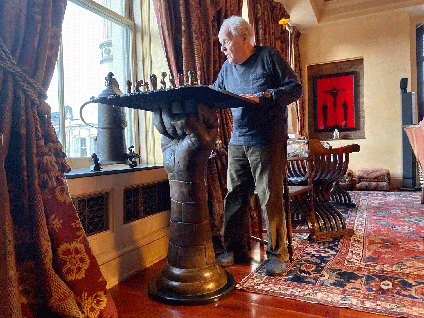 The lavish apartment is full of hidden gems, intermingling with Buhl’s bric-a-brac and personal items. A little Auguste Rodin hand sculpture hides between family photos on a shelf. “That’s a bad Rodin,” Buhl told Hyperallergic, explaining that the piece was cast in the artist’s studio in 1965, many years after his death in 1917. “I’ve got a better one,” the collector said about another, admittedly better looking, Rodin statue that was made by the artist himself in 1910.