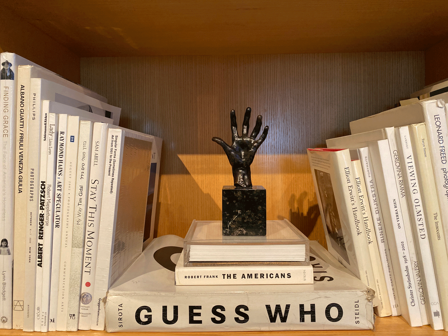 “We’ve decided to put together the history of photography through the media of hands,” said Buhl, referring to himself and Marianne Courville, an art advisor who helped him build his collection. “We had every artist you can imagine,” he continued while leafing through a catalog of the 2004 Guggenheim exhibition, which features a photograph of one of his hands on its cover. He was sitting on a renaissance-style couch flanked by two Man Ray sculptures. Behind him a tall Ben Jackober hand, and in front of him a table designed by Do-Ho Suh which features hundreds of small human figurines lifting a glass surface. On top of it, Bauhl has stacked a few other hand sculptures by different artists, some more famous than others.