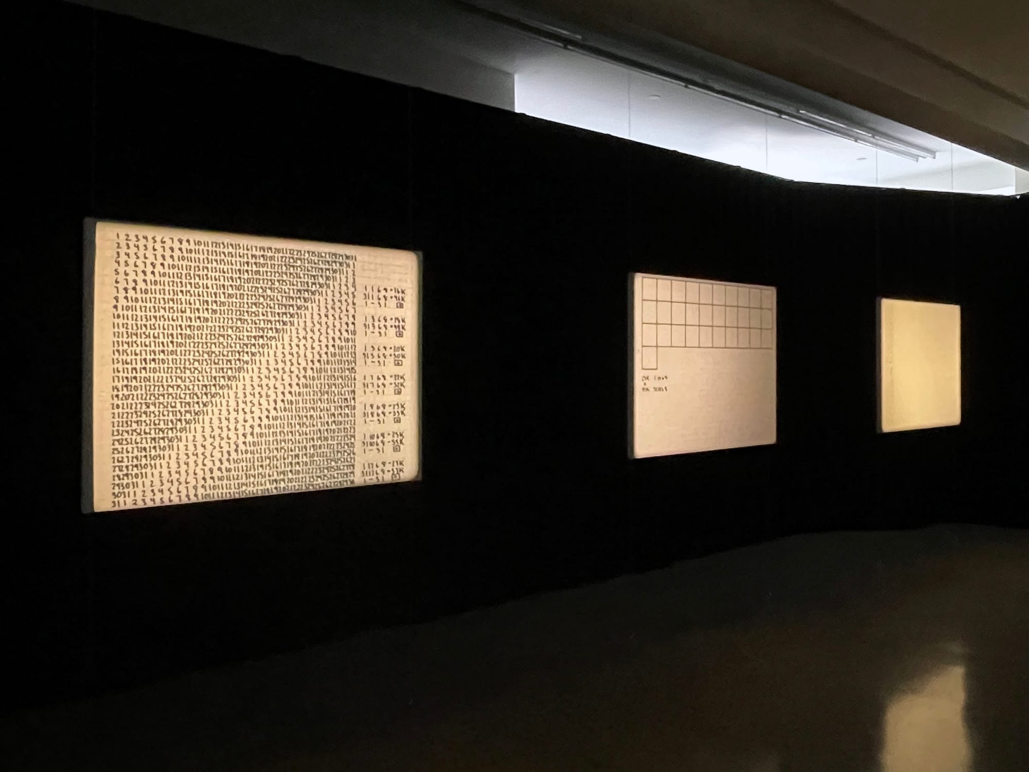 Six Books on 1968 focuses on the six different ways Darboven visualized her konstruktionen method. For one year, she recorded each method in its own graph paper notebook, then turned each notebook into its own reel of film. The bright white page flashes on screen, with Darboven’s precise notation creating the composition. Sometimes it’s a minimalist grid, and sometimes it’s a busy waterfall of numbers. Then, for just a moment the screen goes dark, representing the turn of a page, before the next day brightens the room again.
