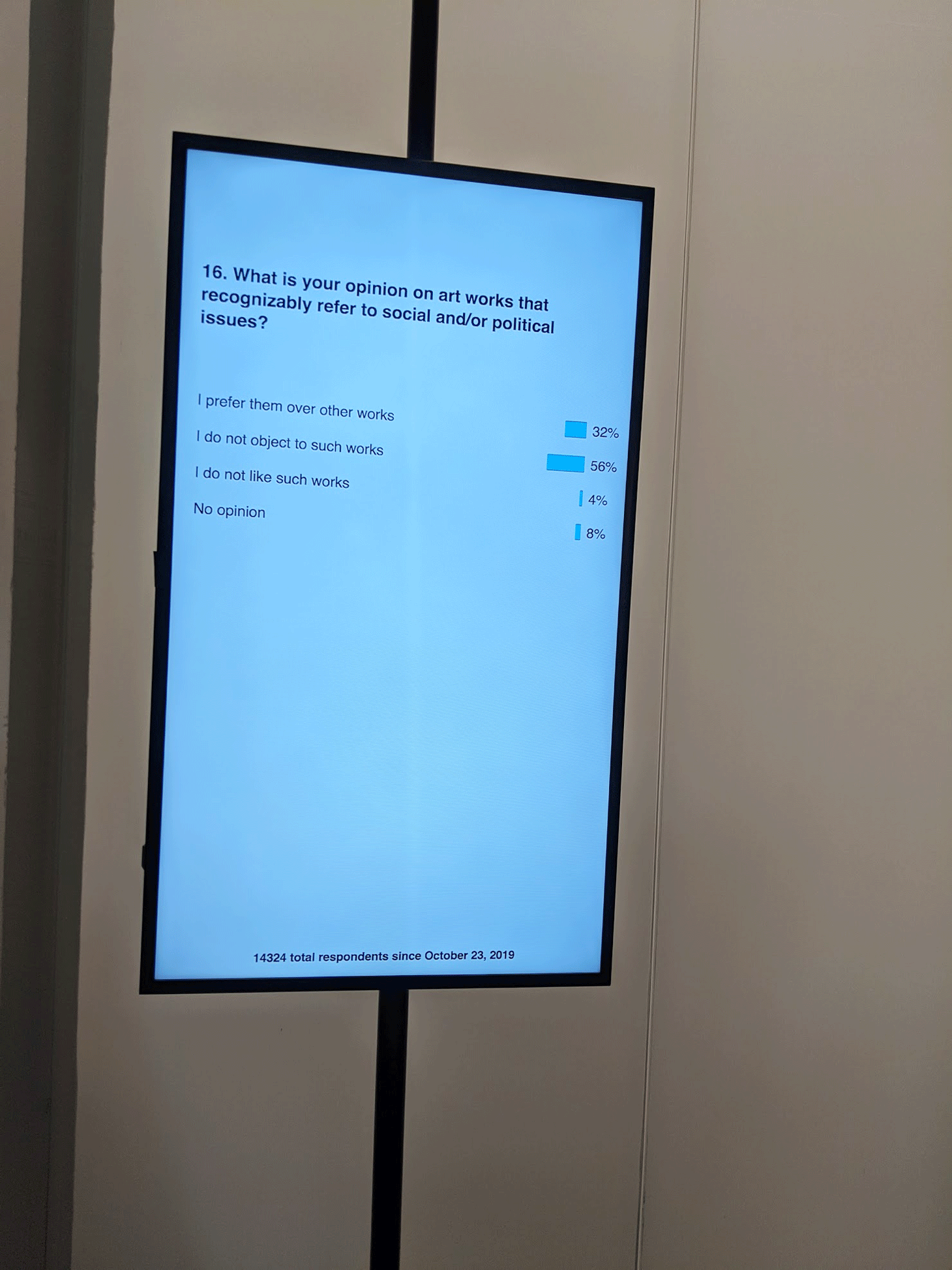 But visitors happening upon the survey artwork today are bound to see some curious results, particularly in response to a certain question about income inequality.