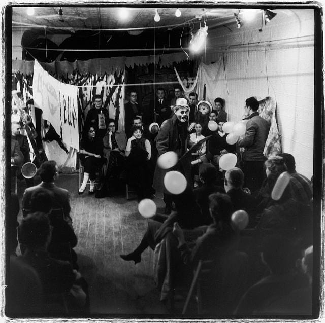 Those who worked in the deeply corroded and rusted hand to mouth environments are legendary and too numerous to list; George Brecht, Allan Kaprow, Richard Marxfield, Red Grooms, Dick Higgins, Jim Dine, Claus Oldenburg, Trisha Brown, Simone Forti and Yvonne Rainer. Robert Whitman, who created an evening of “Sound Theater – Happenings” on June 11, 1960 at the Reuben Gallery explained the need for disarray:
