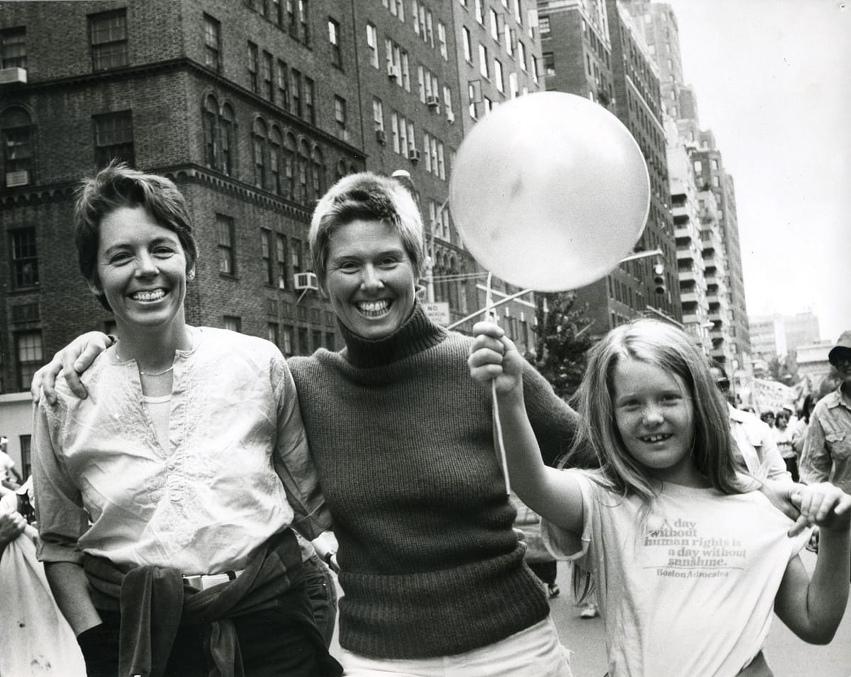 HH: June Pride is an occasion for community gathering and visibility — for queers to gather together. I have many fond memories. My first Gay Pride March (yes, they were political marches then, not rainbow parades!) was in 1974 in New York City. I walked from Christopher Street to Central Park with my daughter on my shoulders. She walked again with me in 1979.