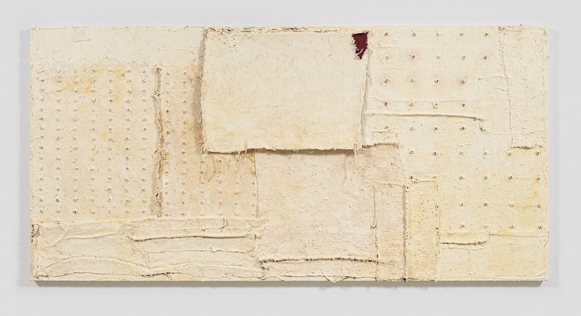 I have two separate bodies of work that inform each other. Mostly I make large near-monochrome oil paintings that incorporate materials ranging from fabrics, rusted roofing tin, linoleum, latex rubber, burlap coffee sacks, and grommets to “natural” materials including straw, leaves, roots, hair, and blood in layers of thick pigment. The materials and the way they are physically manipulated and juxtaposed bring content into the painting field, what I call “material engagement” as a means to “social abstraction.” It’s a way of participating in the narrative of modernist painting and at the same time interrupting and revising that narrative to include voices of difference—those on the fringes, those who have been marginalized or silenced, to make work about agency. Like queer identity, abstract painting is indeterminate. Most of my work occupies a space between painting and sculpture, what we might call a third or queer space. I’m interested in “edges” and what goes on there. It’s where I hang out and am most comfortable.