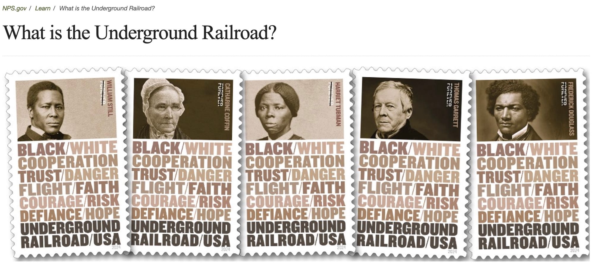 Before the text was restored yesterday, April 7, the webpage titled "What is the Underground Railroad?" featured a whittled-down version of its 2022 text that purged Tubman's name and involvement almost entirely. Her full-body portrait and an introductory quote about steering the Underground Railroad were replaced with a small cropped headshot, among those of other abolitionists who participated in the freedom pipeline, each presented as makeshift postage stamps with the words “Black/White Cooperation.”