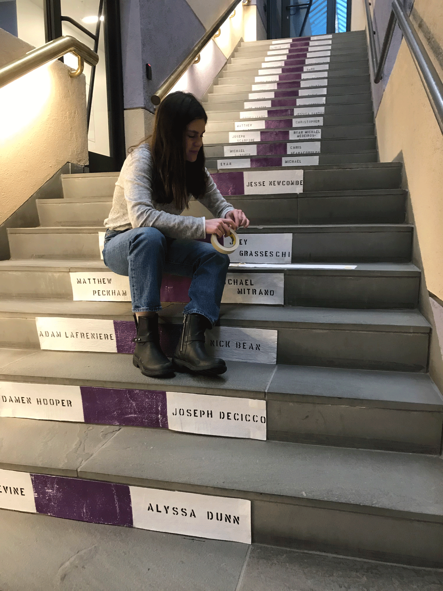 The installation featured the names of 250 people who died from opioid overdoses recorded on the museum's stairs.