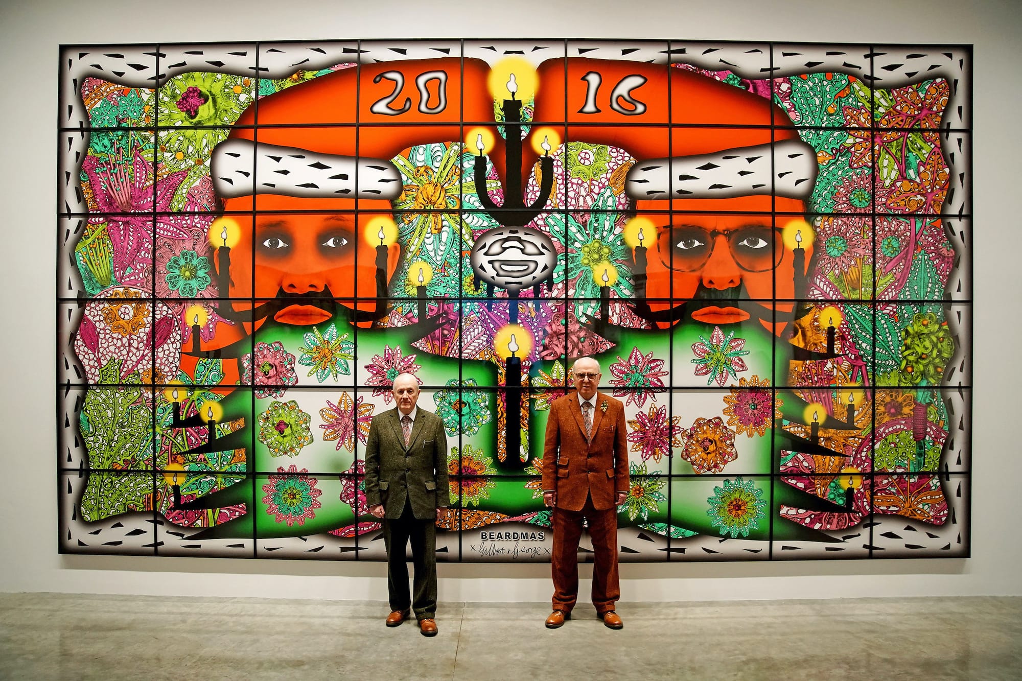 LONDON — This past spring, Gilbert & George — those two-forever-in-one (or one-forever-in-two) living sculptors, who have always dressed and stepped out side by side like a pair of faux-Edwardian English gentlemen (despite the fact that one has always been irrevocably Italian) — made a bid to claim immortality for their 60-plus years of artistic endeavors by opening a namesake venue in East London. The Gilbert & George Centre is a three-gallery space in a former brewery within easy walking distance of their home and studio in Fournier Street, the old Huguenot quarter of Spitalfields, where displaced 18th-century French lacemakers once worked deep into the night by candlelight.