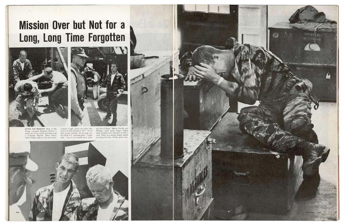 In the Burrows photograph – which is more extreme than the one taken by Deakins – the soldier is unable to support his head because he is so overcome by grief. While it is likely that Johns saw the photograph in the LIFE cover story of April 16, 1965, “With a Brave Crew in a Deadly Fight,” it is also possible that the exhibition Views of Vietnam at the Spencer Museum of Art, University of Kansas, Lawrence, Kansas October 10 – December 30, 2006), which included photographs by Burrows and prints by Johns, helped the artist recall this image.