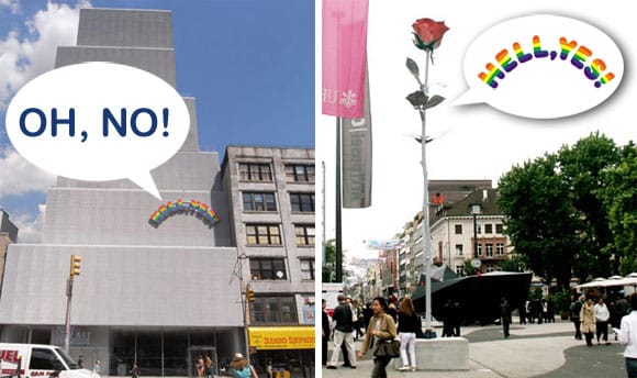A little birdie told us at Hyperallergic HQ that Ugo Rondinone’s "Hell,Yes" (2001) will be removed from its perch on the facade of the New Museum. The same little birdie told us that it is slated to be replaced by Isa Genzken’s 30 foot (8 meter) tall "Rose" sculpture. What do we think of the newest
