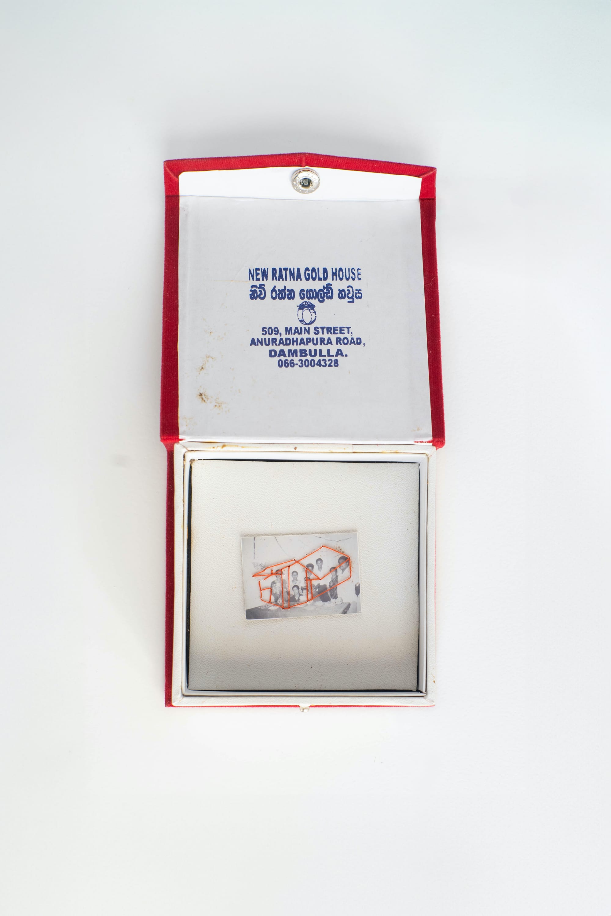 Shironi, who was a teenager when the three-decade war ended in 2009, depicts the burdens and joys that accompanied her frequent movements within the country with a childlike curiosity in her exhibition at Saskia Fernando gallery. She finds refuge and belonging in the needle and thread — perhaps the only constant in her life. The vibrant patchwork and appliqué of “The Lord Your God Is With You” (2024), for instance, suggests a child’s excitement about a road trip to a new home. In the work, a truck is emblazoned with blessings for a safe journey in Sinhala, Tamil, and English, the country’s three official languages. In the series Jewels of Forgotten Memories (2023), she delicately stitches maps of lands, outlines of houses, and other embroidered interventions into black and white childhood photos of her extended family, friends, and neighbors from the Eastern and Central provinces. She sets them in boxes from shops in Sri Lanka that carry authentic gold and jewels, suggesting that these mementos are equally precious.