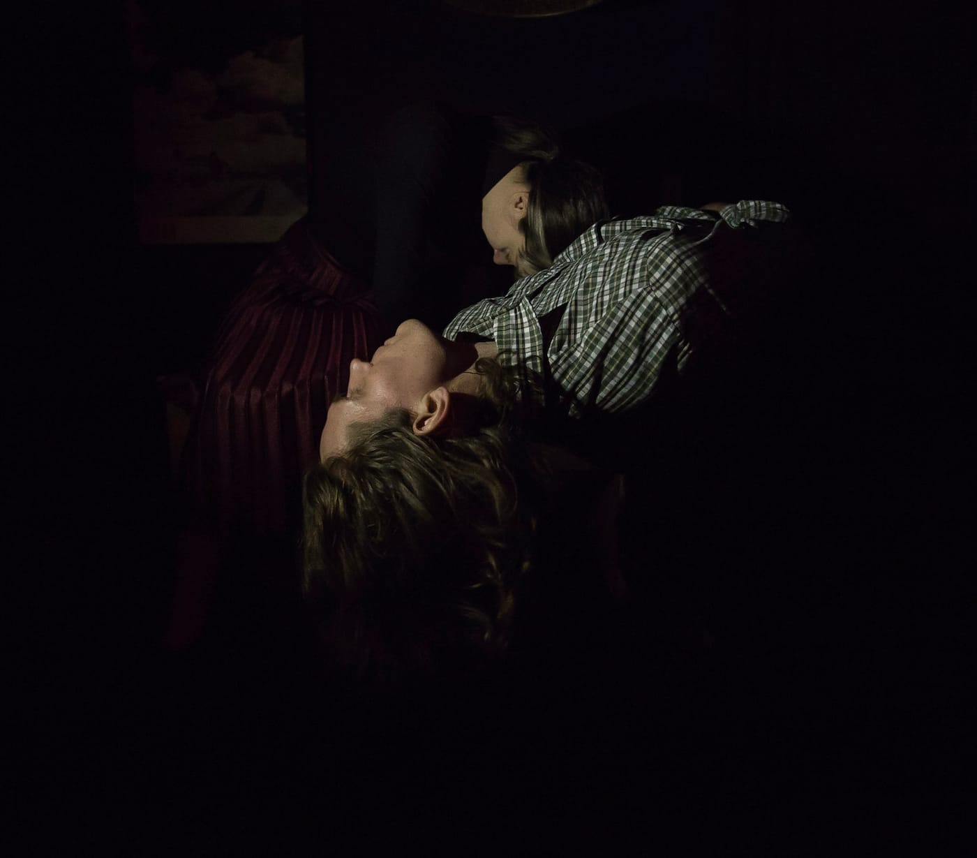 Each audience member who attended the week of previews for Here in February had a distinct story experience in a single Lower Manhattan space. Although the groups of five started together, all descending a dark staircase to a basement apartment and carrying funeral cards for a stranger, they were quickly broken into twos and then ones as a narrative of grief, nostalgia, and the complications of childhood memory grew increasingly fragmented and surreal.