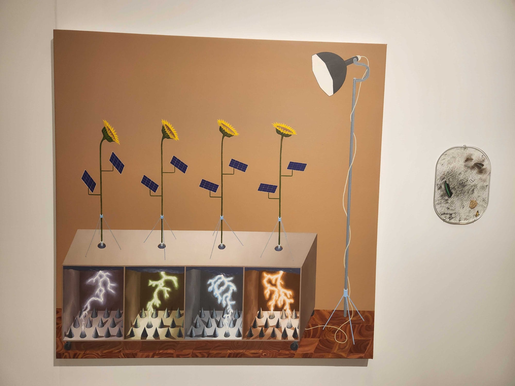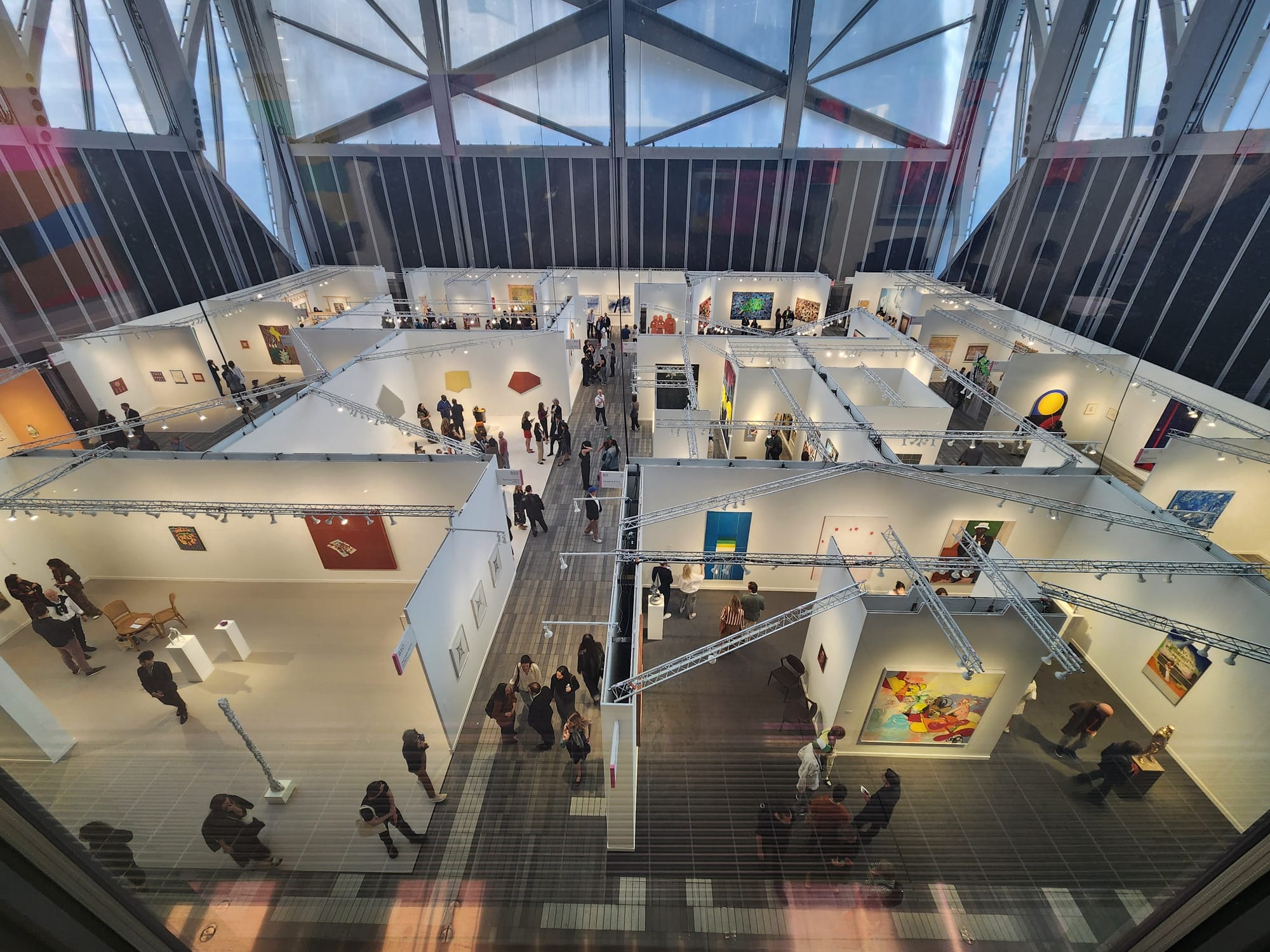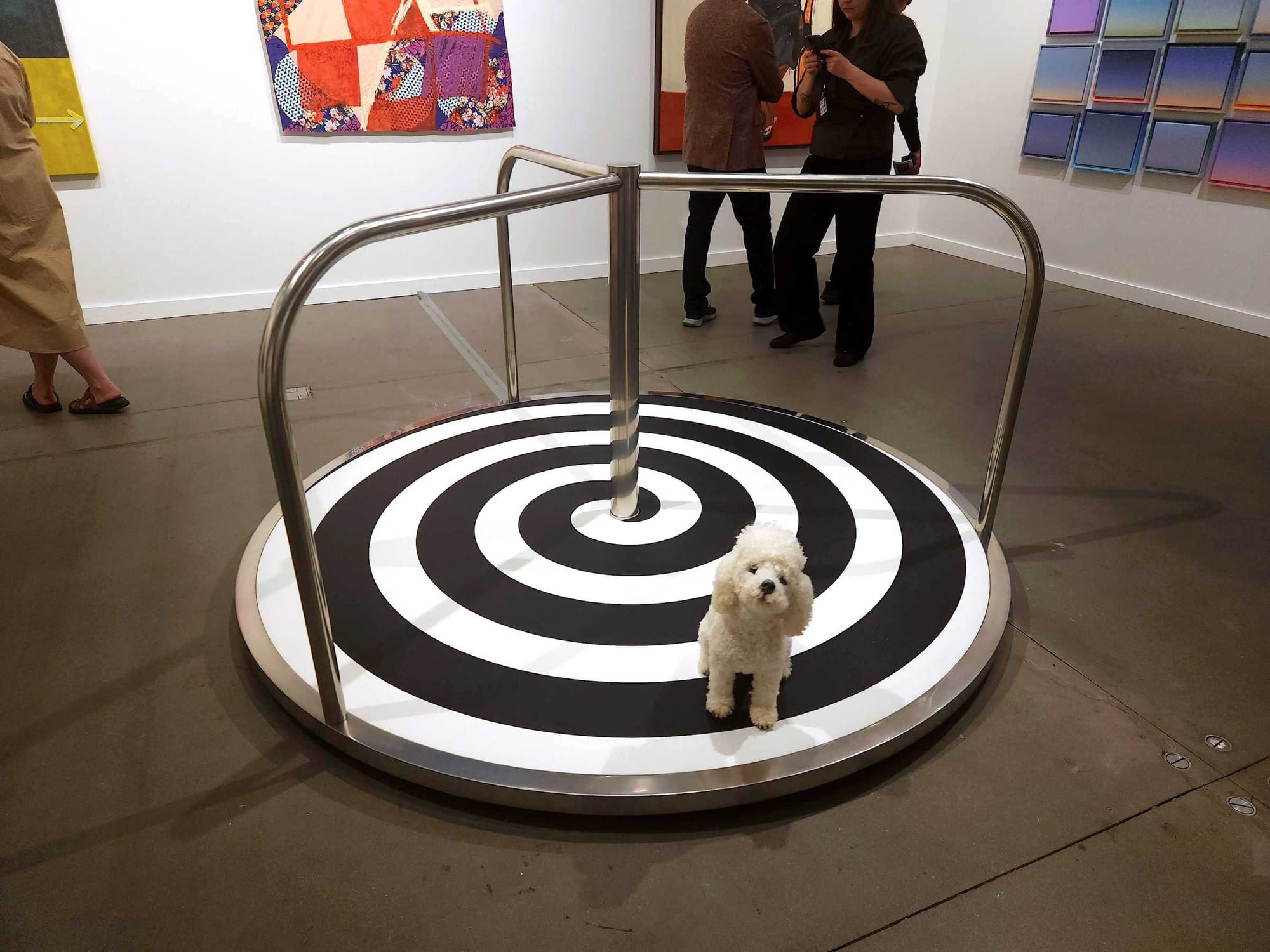 Predictably, the first floor, as in Level 2, was where exhibitors put out all of their bells and whistles — or in this case, kinetic sculptures and installation work. At the Massimodecarlo Gallery booth, Elmgreen & Dragsett's "Social Media (White Poodle)" (2023), consisting of a lifelike model of a toy poodle sitting on an automatically revolving merry-go-round, happened to closely resemble the experience of scrolling through my own Instagram explore page, though it didn't quite provide the same oxytocin release.