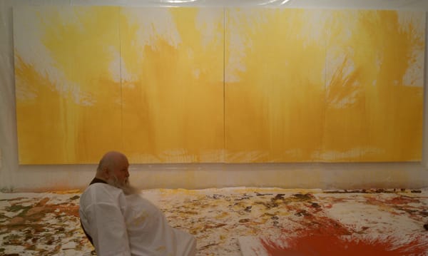 Today at 9:00 am EST (though the website says 10) starts Day Two of his Painting Action. There will be a slew of blank canvases, including two twenty-foot behemoths. The paintings will be exhibited starting February 19, with the opening taking place from 6-8pm.