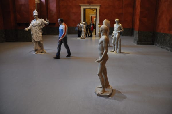 Installed in the institution’s Dionysus Hall, the artist created a false floor for the Greek and Roman works so that they could be installed at the level of the plinths. The visitors approached them on their own level, giving them all a greater sense of familiarity.