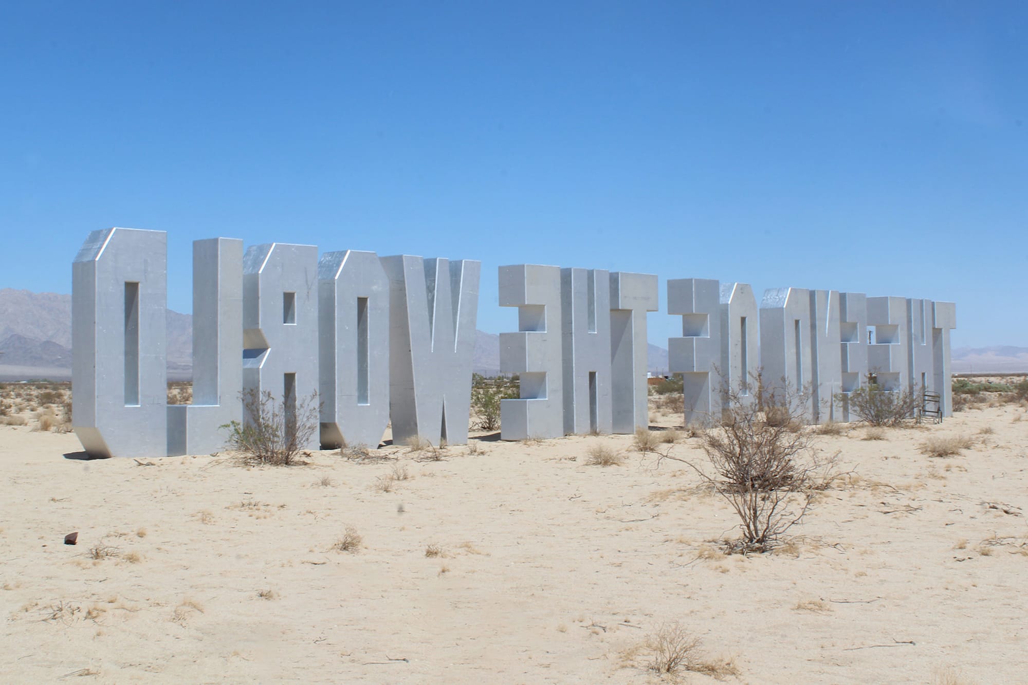 Though the biennial turns the Mojave into a picturesque backdrop for art, it struggles to actually represent the people who live there. Only two of the nine artists are from the region. Maybe the selection of the curator — Londoner Iwona Blazwick, OBE, of Whitechapel Gallery — and the artists is by itself the most direct reference to the influx of people moving to the Mojave, recreating the fraught dynamic of mixing outsiders with locals through cultural exchange.