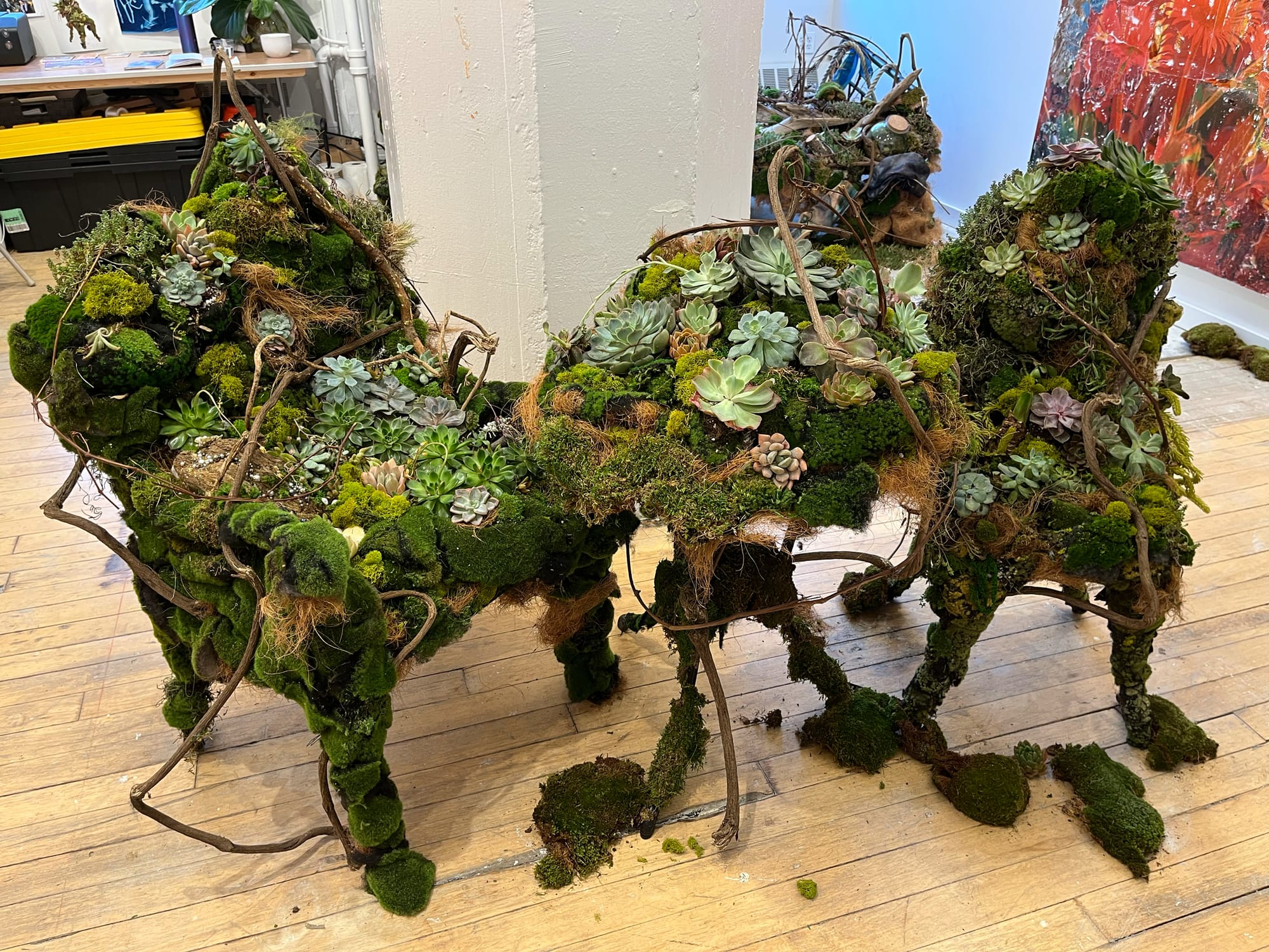 Wood recently finished adorning two patio chairs and a small table she planned to install at Harlem’s Jackie Robinson Park with succulents, grapevines, and two types of moss.