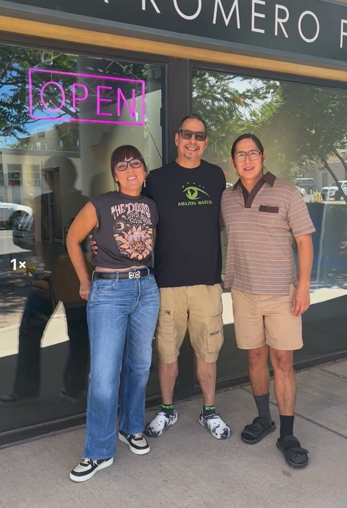 The aforementioned Cara Romero (Chemehuevi) shared her booth with her husband, potter Diego Romero (Cochiti), and his son Santiago Romero (Cochiti). Romero showed her new photography series “Starlight, Starbright" (2023), featuring a multi-generational group of Indigenous women skating at a roller rink, exuberant in their display of power, playfulness, and beauty. Diego Romero showed one piece, a pot titled “King of the Night” (2023), while Santiago Romero showed a series of abstracted landscape and architectural paintings rich in texture.