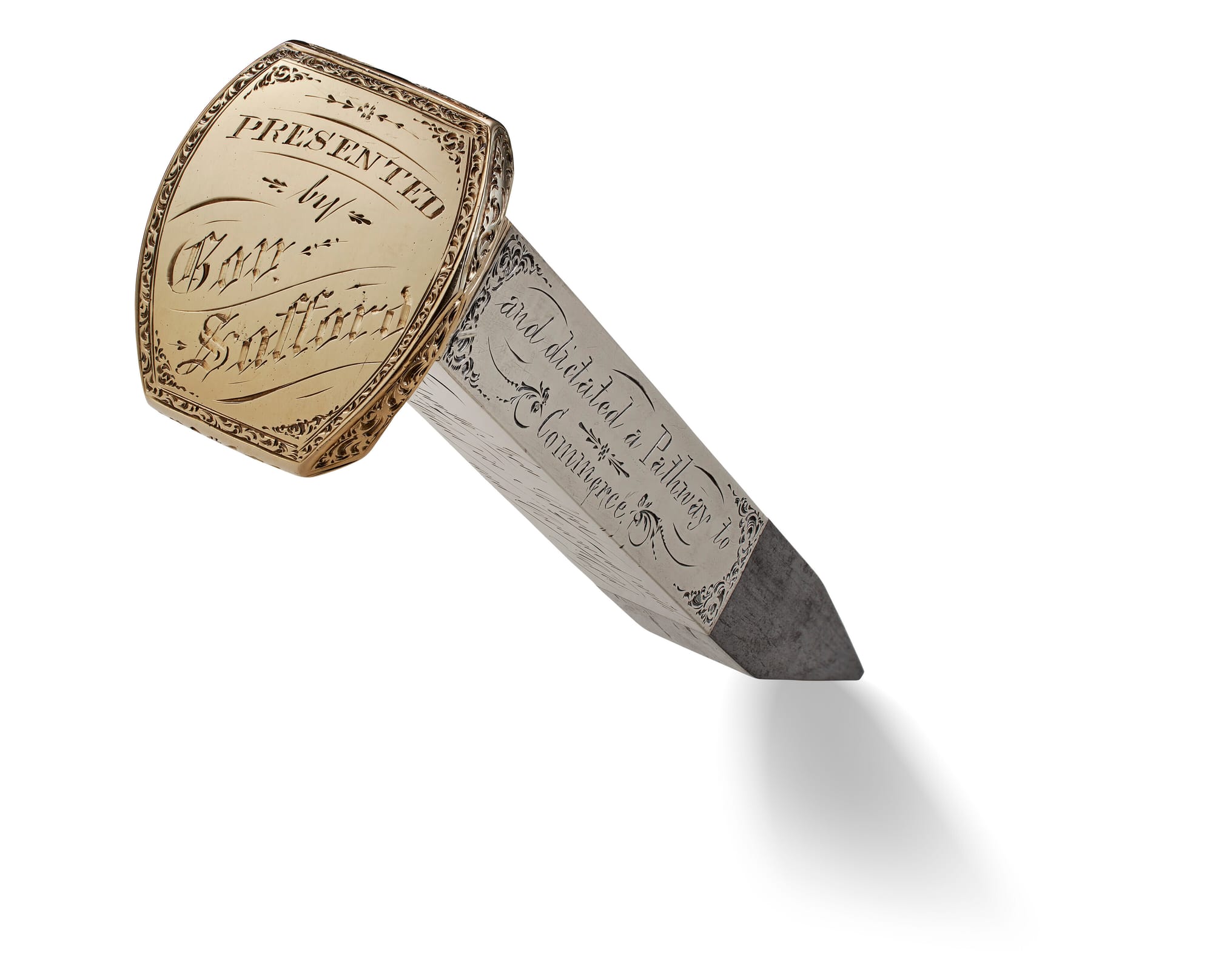 "Hewes opted to commission instead a golden spike as his offering to commemorate the meeting of the two railroads," Christie's catalogue essay explains. The event, which involved four commemorative spikes in total, was one of the first events in history to be live-broadcast to an entire nation.