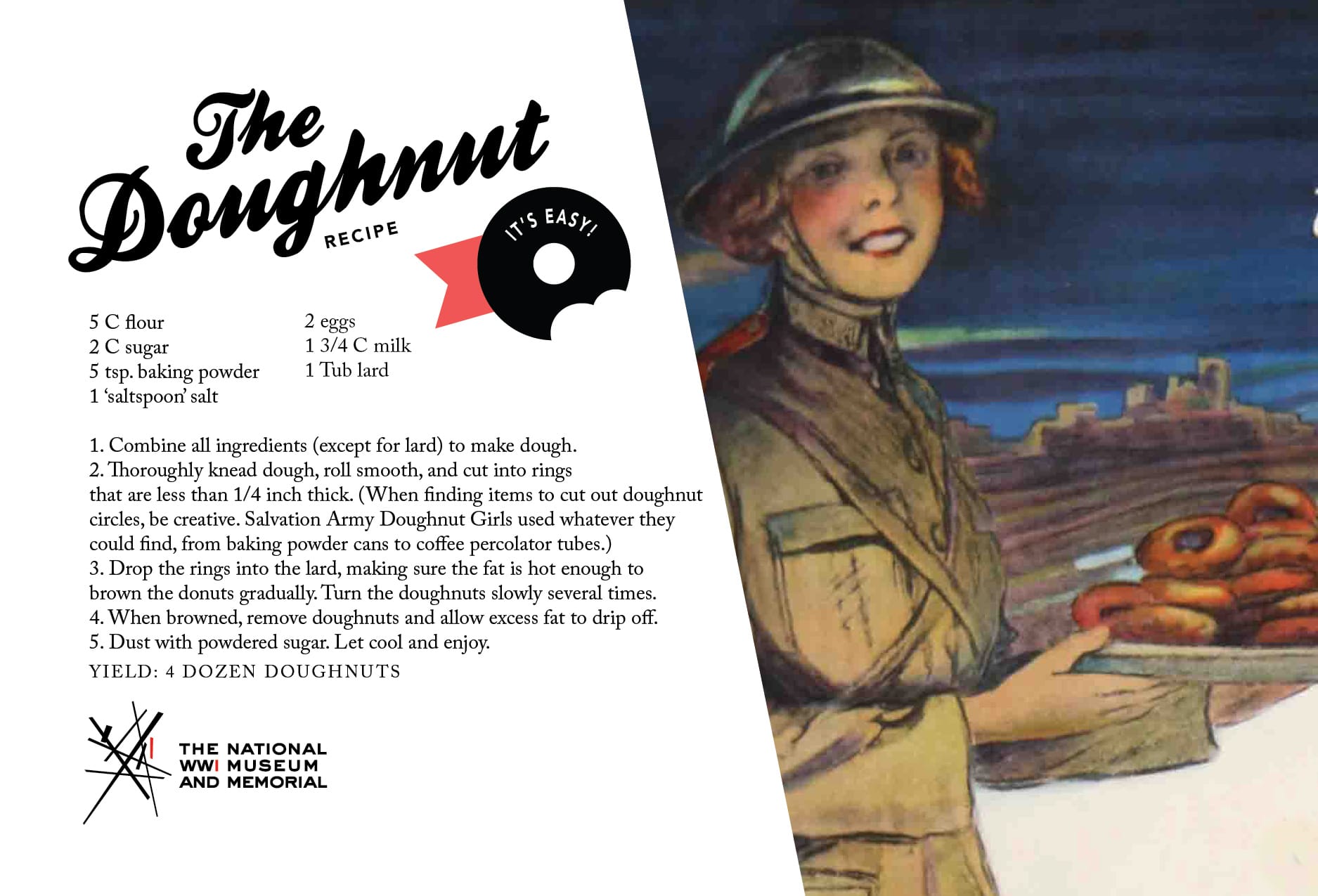 Peruse hundreds of archival materials on the National WWI Museum and Memorial's online collections database, and don’t forget to claim your free donut at participating shops. Or make the treats yourself by following the wartime donut recipe below, shared by the museum "for anyone looking to fill a hole in their time." (Sigh.)