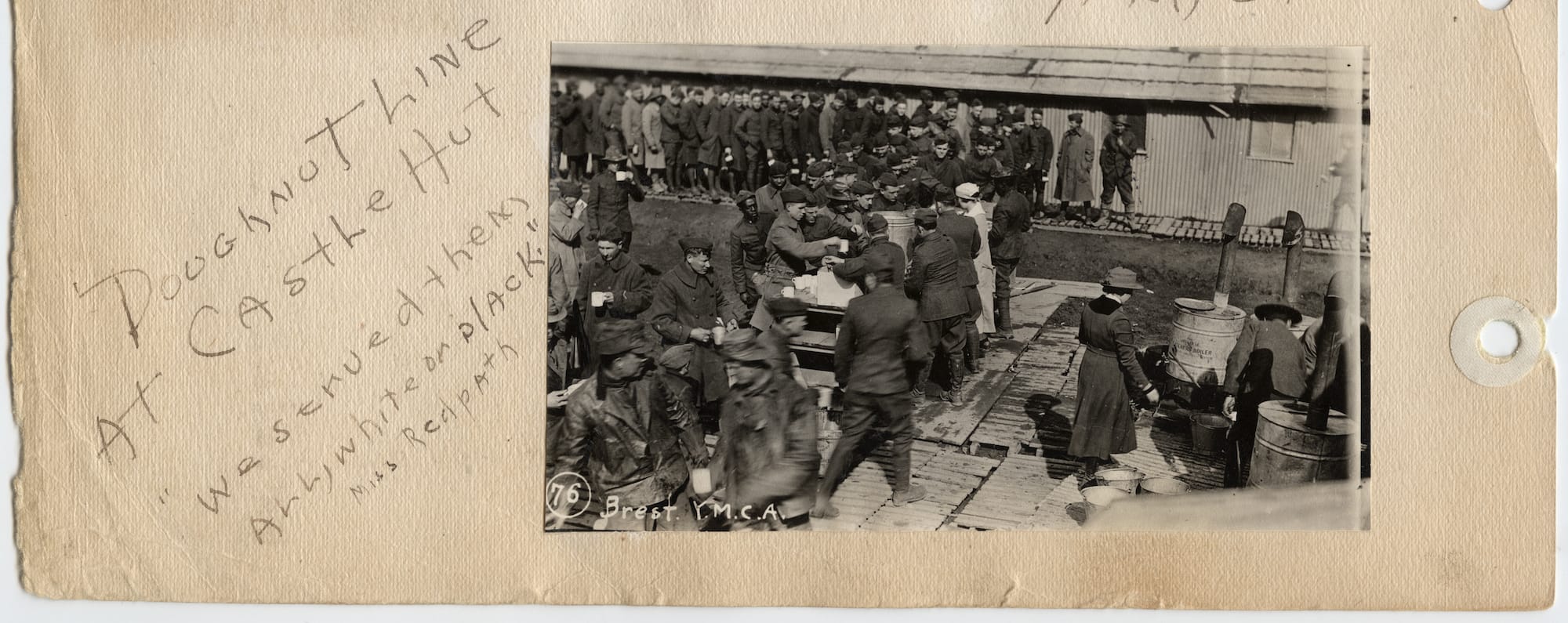 "Another image of a line of American soldiers waiting for doughnuts shows that even in a segregated army, Black and white soldiers stood next to each other to get their treats," Cart added. (The photograph is scribbled with the message "We served them all, white or black" -- a poignant reminder of the deeply racist attitudes toward Black soldiers, who served in segregated units from the Revolutionary War through 1948.)