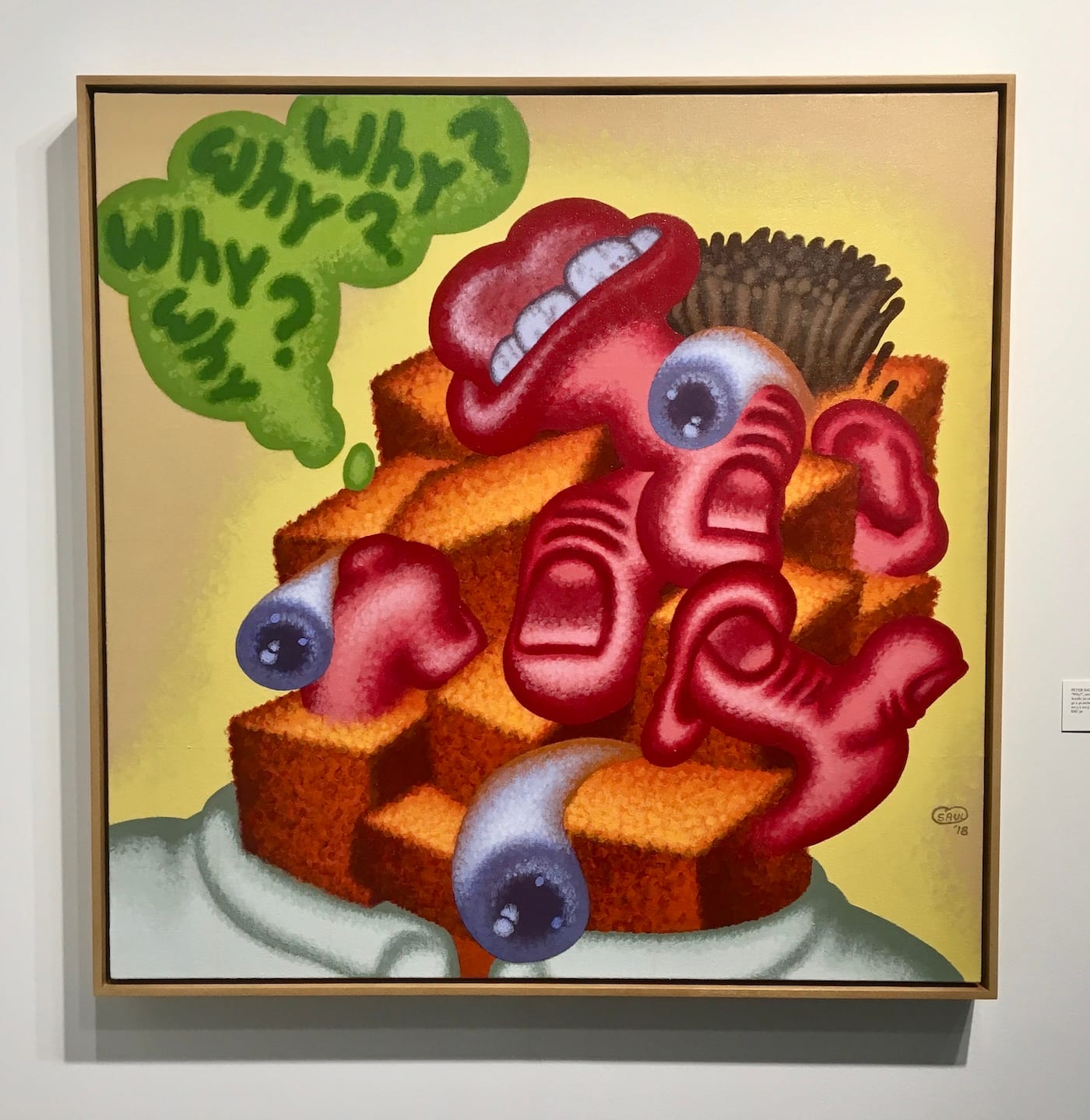 The pure visual pleasure of juiced-up and jewel-like color dominated paintings by Alice Neel (Victoria Miro), Etal Adnan (Barbara Mathes), Juan Uslé (Cheim & Read), Jonathan Lasker (Cheim & Read; Thomas Schulte), and Peter Saul (Michael Werner), whose “Why?” (2018), a pile of eyeballs, lips, and thumbs, was proof positive that the 84-year-old artist is operating at top form.