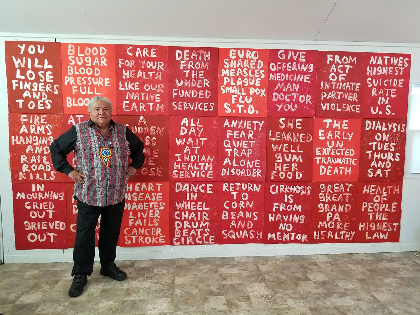 H: Your other new installation, “Health of the People is the Highest Law,” seems to reference different health issues that affect Native communities — everything from diabetes and heart failure to suicide rates. What prompted you to use art to take on this topic?