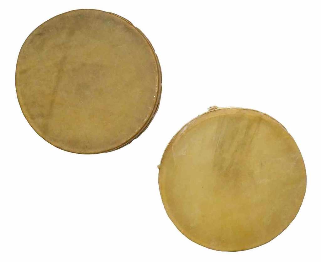 Hand crafted by Conrad Fisher (Northern Cheyenne, Lame Deer, Montane), these 15-inch elk rawhide drums are stretched across a wooden frame, and the back of the drum is laced with more elk rawhide lacing and a handle is created to make it easier to drum. Priced at $255, they are one of countless items available at Native American trading posts across the Great Plains, including at the Prairie Edge & Sioux Trading Post in South Dakota.