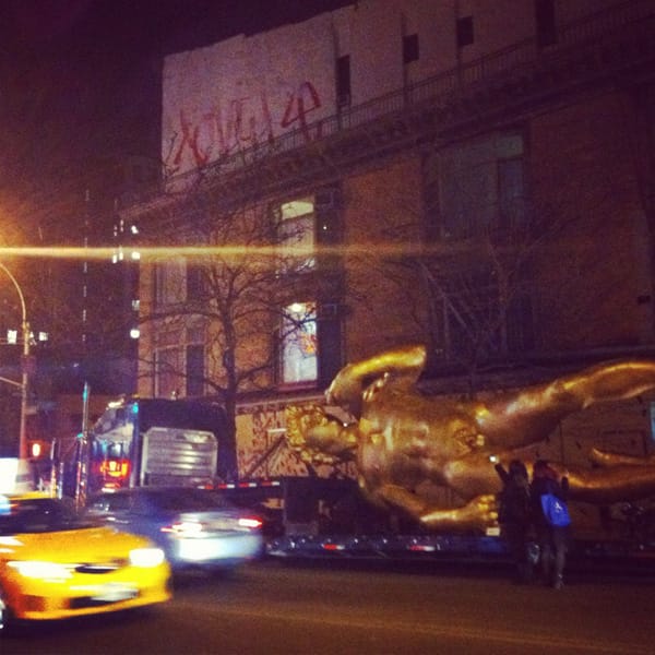 Last night's panel event at Storefront for Art and Architecture was a heady affair. A group of panelists, myself include, sat inside the Vito Acconci-designed structure while a 30-foot David sculpture by Serkan Özkaya lay horizontal on a flat bed outside on Kenmare Street.