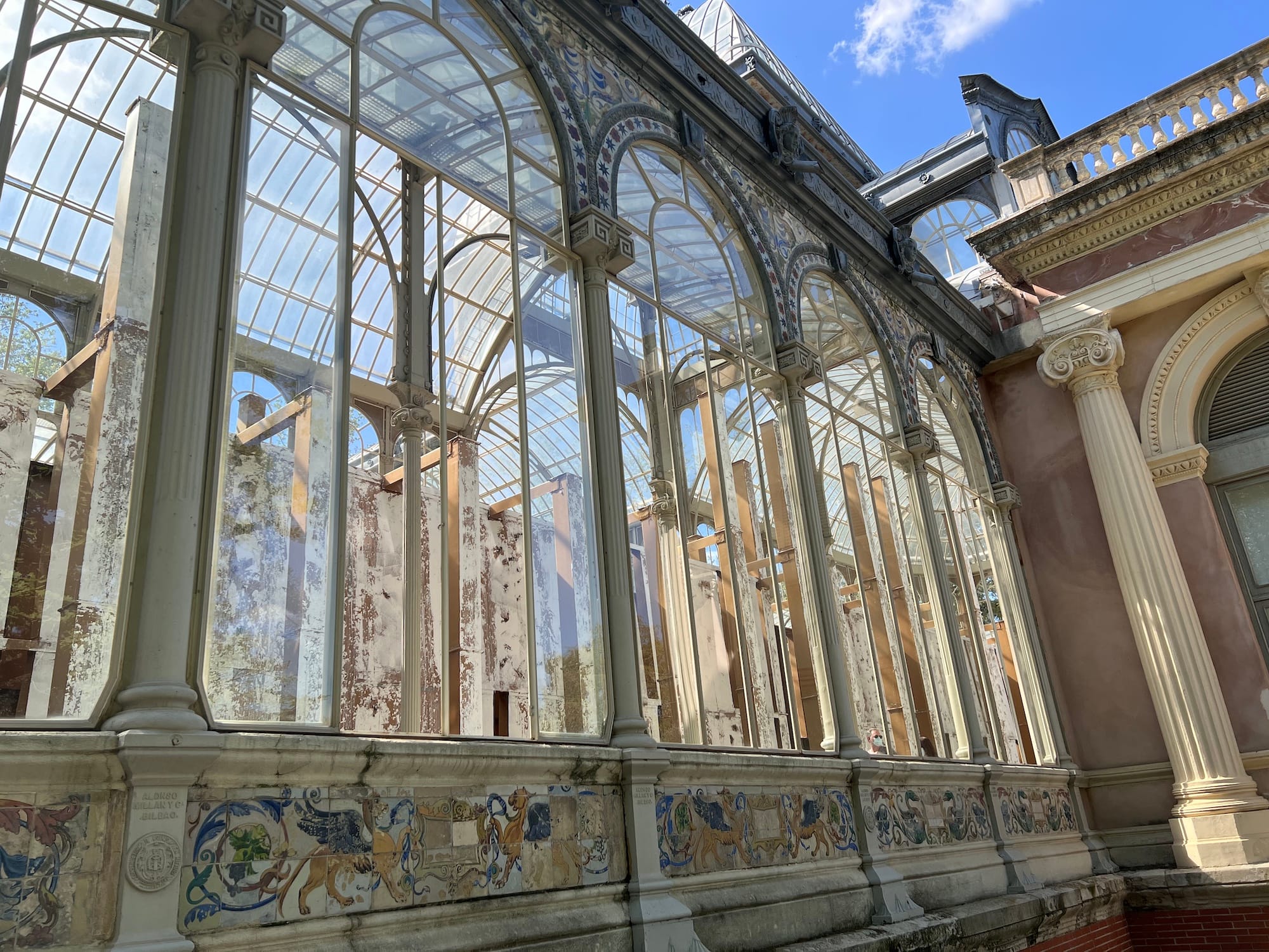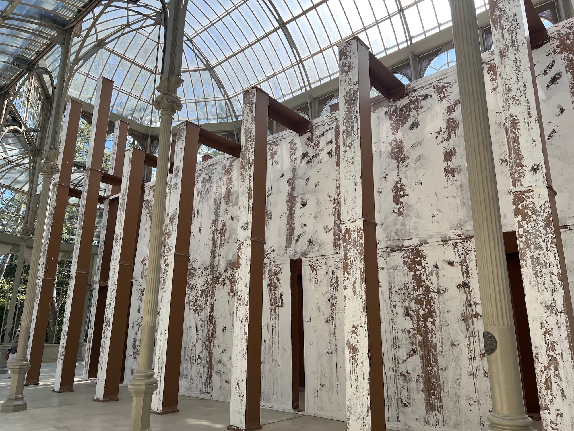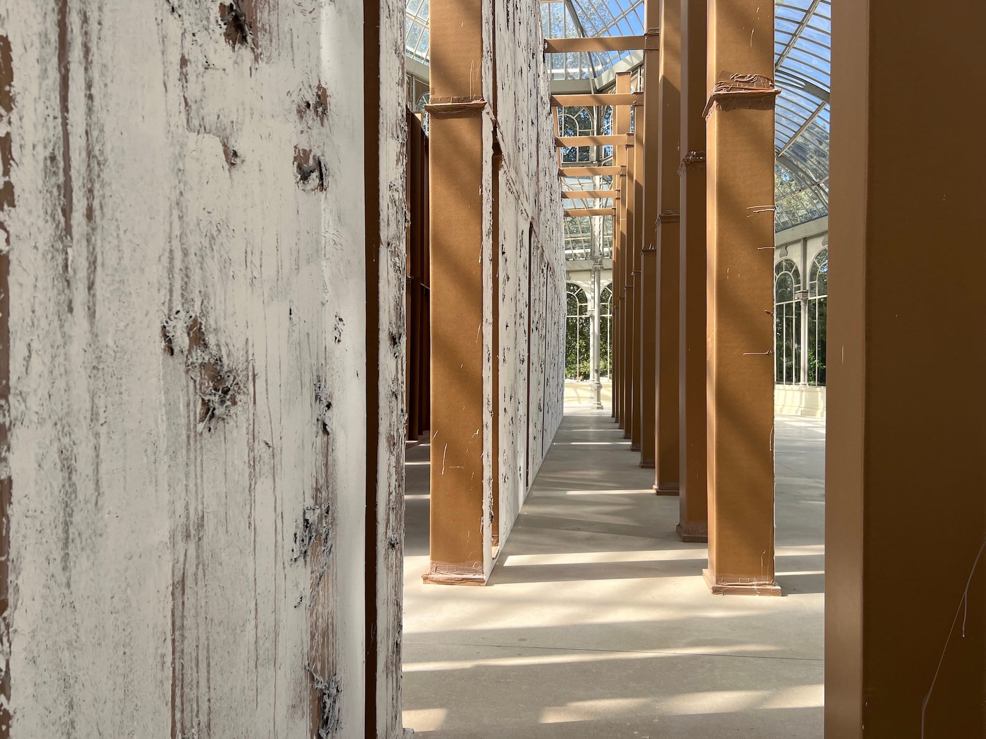 MADRID — The Crystal Palace, situated at the heart of Madrid’s Retiro Park, is an evolving landscape, like the green space around it. Its temporary exhibitions, which rotate approximately every six months, change the feel of the environment completely. I had grown so accustomed to the wooden ships and sculptures of indigenous gods from Kidlat Tahimik’s exhibition, which filled the Crystal Palace from October 2021 to March 2022, that I was initially unsettled by the incredible transition to Carlos Bunga’s Against the Extravagance of Desire. After spending time with the work, however, I became amazed by the unique ways it engages with the space.