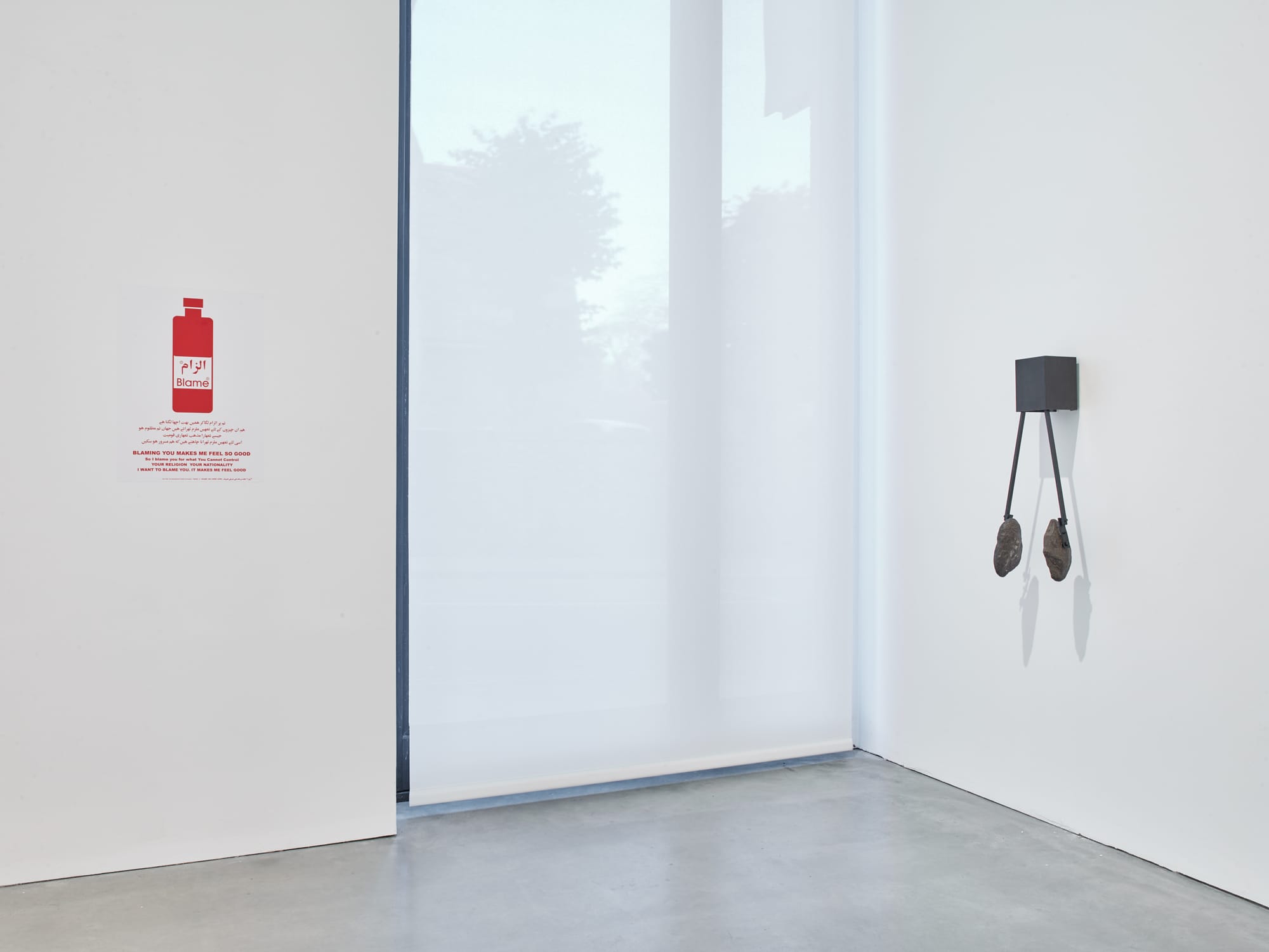 Next to Gupta’s poster is Munem Wasif’s quietly devastating photographic series Spring Song (2019), which documents the belongings of Rohingya refugees living in camps in Southern Bangladesh. Photographed individually against monochromatic backgrounds, these mundane objects — a cell phone, a toy, a bottle of skin lotion — take on monumental significance. The people they belong to remain absent.