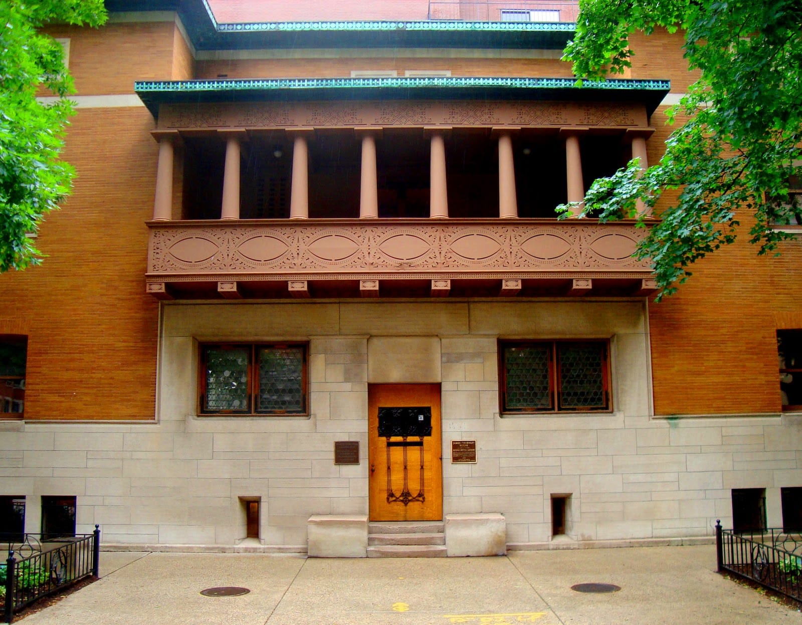 The Charnley-Persky House, located in Chicago and completed in 1892, was designed by one of the early pioneers of modern architecture, Louis Sullivan. Wright worked with Sullivan as a junior draftsman in the architect’s firm, working on residential commission such as the Charnley-Persky House. Originally commissioned by James Charnley, a Chicago lumberman, the house was bought and restored by architectural firm of Skidmore, Owings and Merrill in 1986. In 1995, Seymour Persky purchased the house and donated it to the Society of Architectural Historians. The Charnley-Persky House displays Sullivan’s move away from Victorian architectural styles to a more abstract vocabulary that would become a touchstone of Modernist architecture.