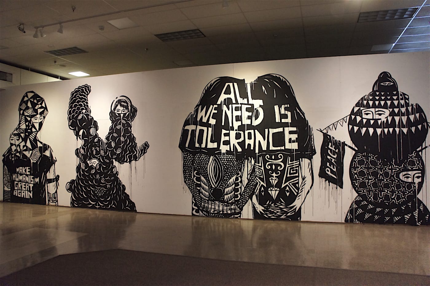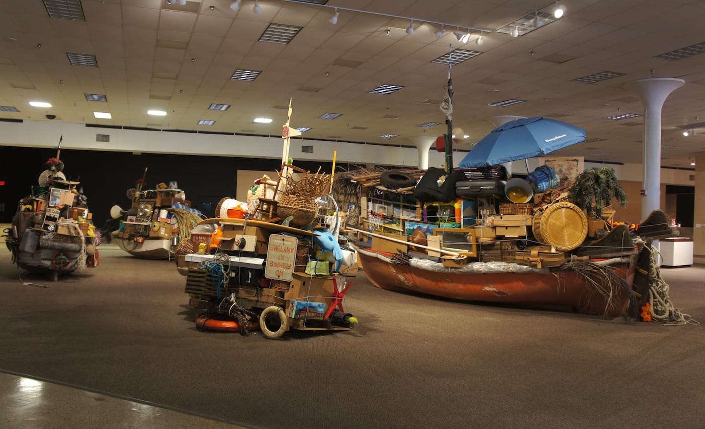Indeed, the biennial’s theme is The Middle of Now | Here, a challenge to the notion that Hawaii, an isolated population center, is “in the middle of nowhere.” Local artists here have a lot to say. At the Honolulu Biennial, a selection of Hawaii artists are joined by leading and emerging artists from Australia, China, Guam, Indonesia, Japan, Korea, the Marshall Islands, New Zealand, the Philippines, Samoa, Tahiti, Taiwan, Tonga, the United Arab Emirates, and the continental United States. Their works are mixed and spread throughout nine different art galleries and civic centers across the city.
