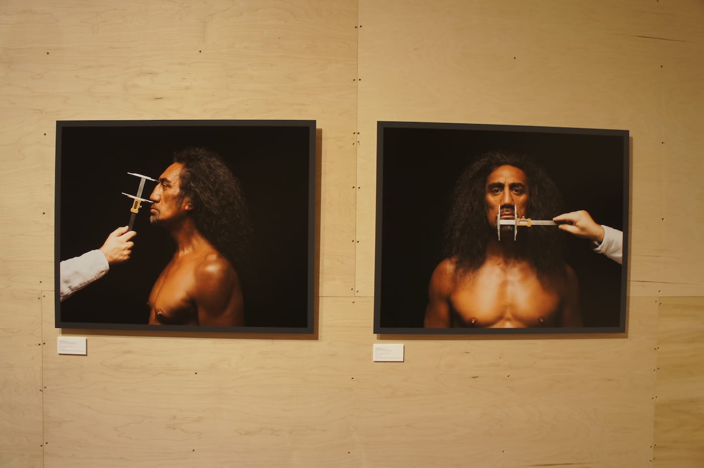 A number of works in the Honolulu Biennial take ownership of the past to reflect the perspectives of Pacific peoples whose experiences and cultures history may have forgotten or glossed over. For example, artist Yuki Kihara explores the pseudo-scientific forms of anthropometry in the 19th century, when Pacific peoples were often fetishized and objectified as lab specimens and commodities. In “A Study of A Samoan Savage” (2015), Kihara has photographed the Samoan artist Ioane Ioane who poses as the Polynesian demi-god Maui as he’s poked and prodded by medical instruments. Photos taken in studies like these were historically used to lend support to theories of racial eugenics and cultivating genetic superiority. But here, the powerful Maui returns the gaze of the viewer defiantly, reclaiming his image.
