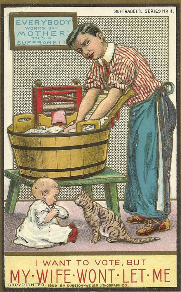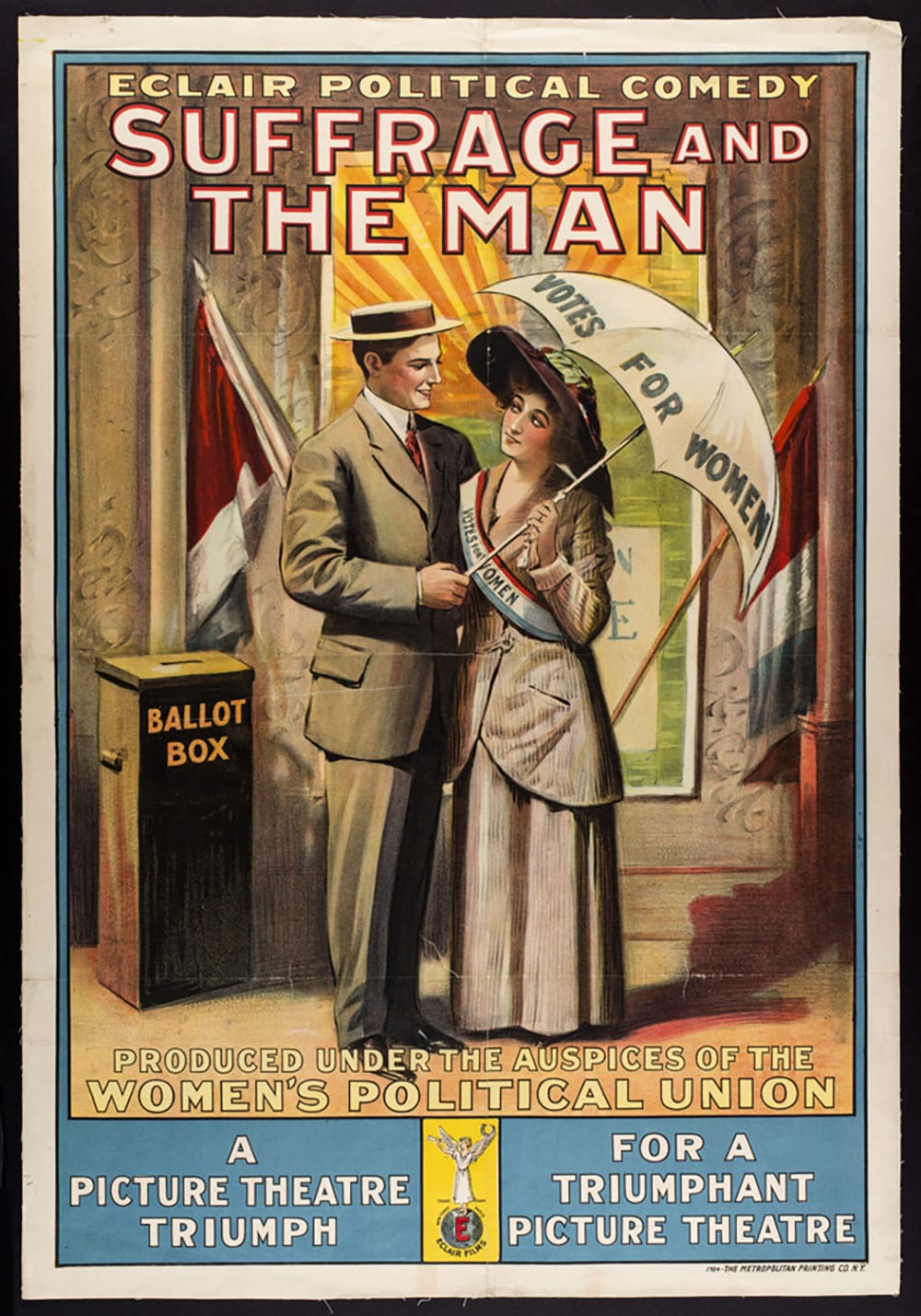 Divided into several rooms, Hotbed presents its historical documents and ephemera in loosely defined categories, beginning with an introduction to the major players, before weaving through questions of feminist fashion, birth control, women’s activism in the areas of labor and racial equality, timelines of marches and protests, and a whole section on pro- and anti-suffrage propaganda, from postcards and flyers (many of the biplanes that dropped pro-suffrage leaflets were themselves piloted by women) to posters and the new medium of movies, played at nickelodeons.