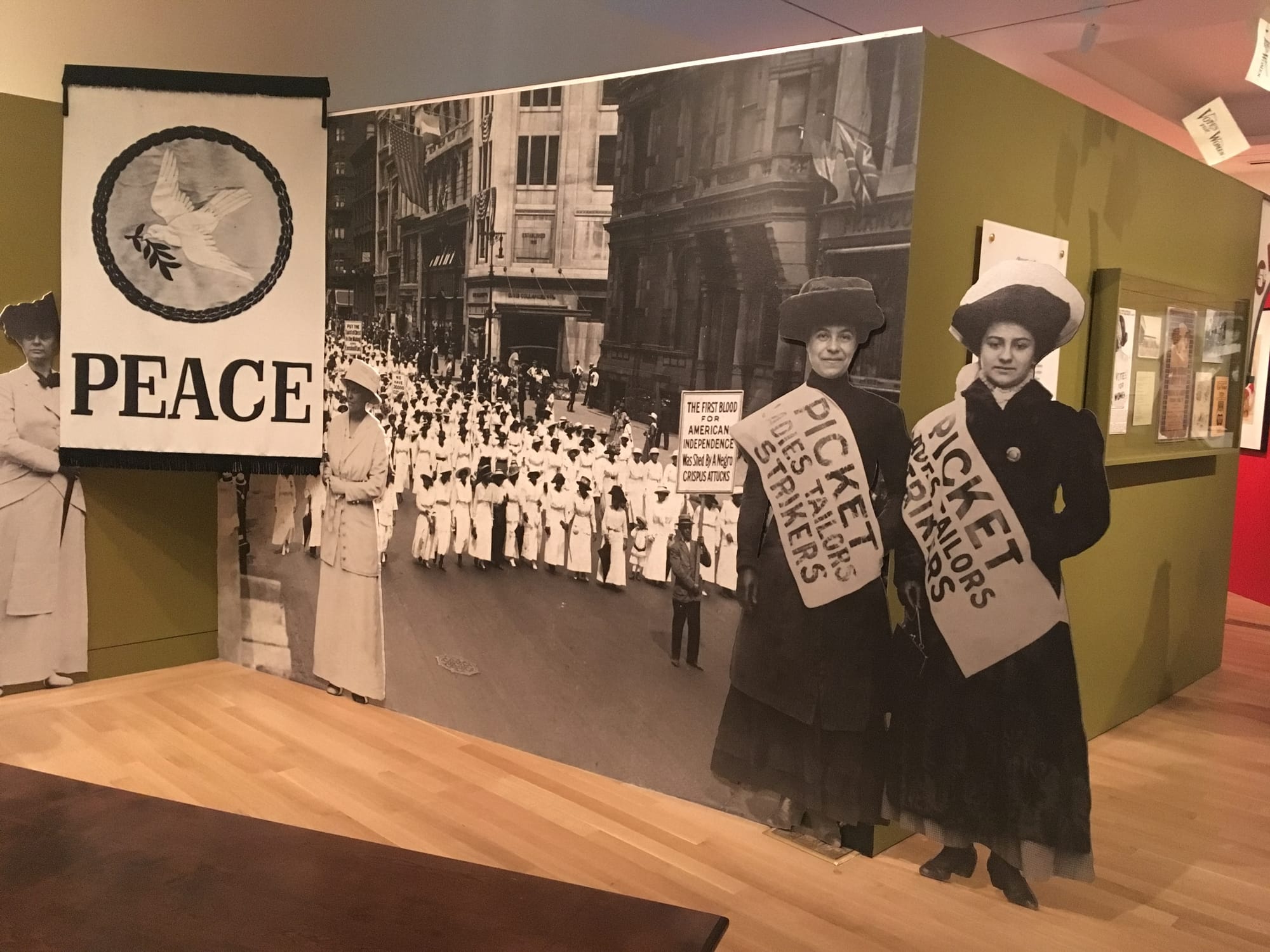 The second half of the exhibition offers a suffrage movement separating into factions during the First World War, with women divided between idealist anti-war pacifism and a more practical pro-war loyalty, a means of proving a patriotism deserving of equal rights — a strategy often used by marginalized groups, like Japanese-Americans during WWII and African-Americans in almost every war, from the Civil War to Vietnam. The racial divide also comes out in this section, as does the wartime xenophobia that results in the deportation of Emma Goldman and hundreds of other perceived enemies of the state under the auspices of the Red Scare. “In the 1920s, bohemia decamped to Paris as Prohibition drove much of New York social life underground,” reads the wall text, but the fact that the temperance and suffrage movements were themselves intertwined is largely glossed over.