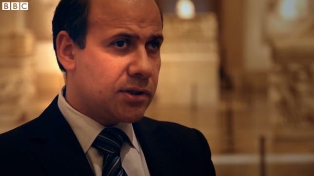 Dr Assaad Seif, head of excavations at the Directorate General of Antiquities in an interview with the BBC’s Simon Cox (screenshot by the author)