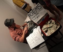 Now that the abstract notion of leaving the place I have called home for the past decade and a half had been made concrete with the establishment of a date I was presented with the problem of finding a suitable way to say goodbye. Luckily Zach Houston of the Poemstore in Oakland was only a few booths away madly punching out free verse on an old portable typewriter. Your subject, your price he told me. So I dropped $10 in his typewriter case and told him I needed to say goodbye. He said that sounded like a big responsibility. I told him it wasn’t that dramatic, I was just planning a move and I wanted a way to say goodbye to my friends.