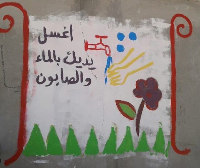 UNICEF and partners also organize children to deliver health and education messages creatively throughout Za’atari camp through the “Talking Walls” project. Groups of young people create messages and paint them artistically in common spaces throughout the camp like communal kitchens and/or latrine and shower blocks.