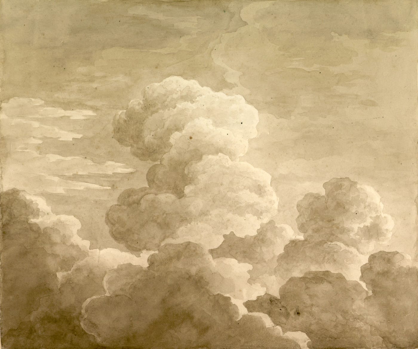 The art world was by no means spared by this deluge, as some royal project commissions vanished or were abandoned as certain artists chose exile over revolution. For these expats, Italy was a favored destination, and many of the sensitive small drawings on view here seem inspired by those of the Renaissance. They thus provide an important artistic service today. They reverse the trend of imposing, grandiose contemporary art and monumental political art, where individual sensitivity is superseded or shattered by bombastic sensationalism. For as Antoine-Laurent Castellan’s early 19th century drawing, “Cloud Study” (circa 1812-1818), suggests, even puffy clouds can suggest the smoke of burning revolution.