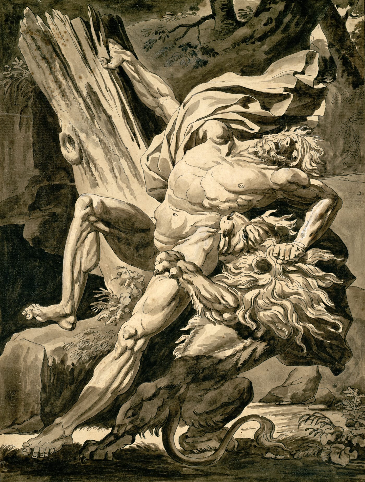 By including some pretty wonderfully contrasting pre-revolutionary drawings, such as David’s “Study after Guido Cagnacci’s Young Martyr” (circa 1775) and Jean-Honore Fragonard’s wildly lavish fête galante drawing “The Slap” (1785), the show demonstrates how Rococo’s jubilant extravagance was overthrown by a severe Neoclassicism that accentuated the moral climate of the final years of the monarchy’s regime. Most illustrative of this morality art is the divine retribution depicted by Jean-Baptiste Regnault in his drawing “The Deluge” (circa 1789), based on the great flood myth.
