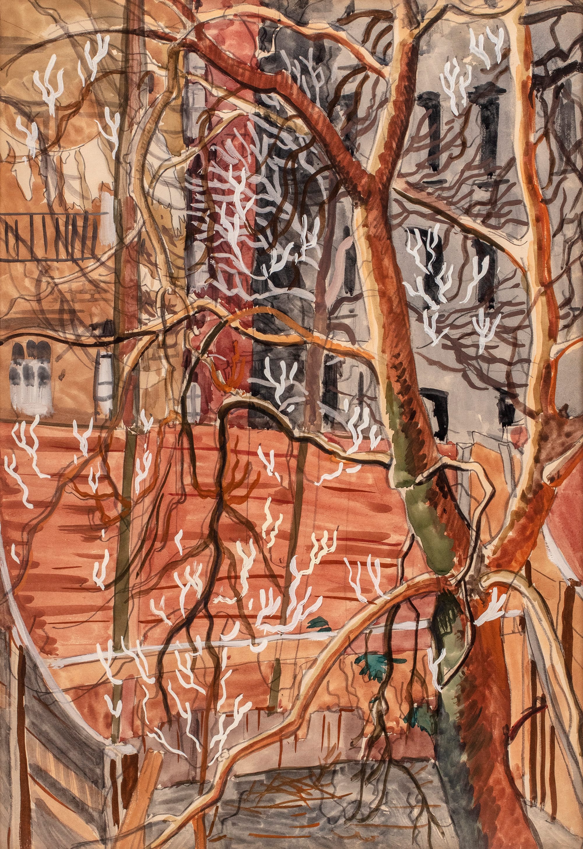 Charles Burchfield, "Backyards in New York" (1916), watercolor, white gouache, and graphite on paper (reproduced with permission of the Charles E. Burchfield Foundation)