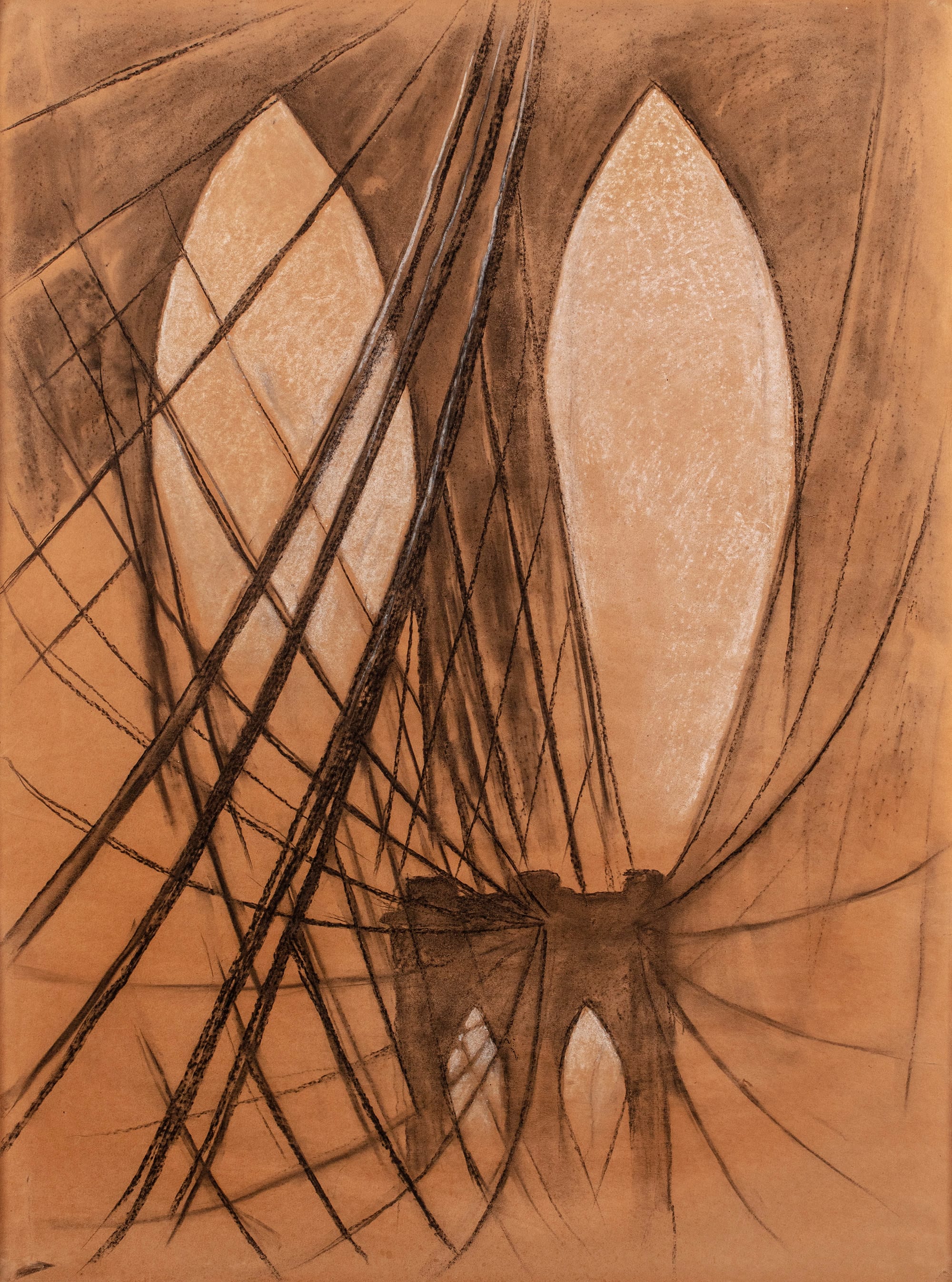 Georgia O’Keeffe, "Study for “Brooklyn Bridge” (1949), charcoal and black and white chalk on paper (© 2021 Georgia O’Keeffe Museum / Artists Rights Society (ARS) New York)