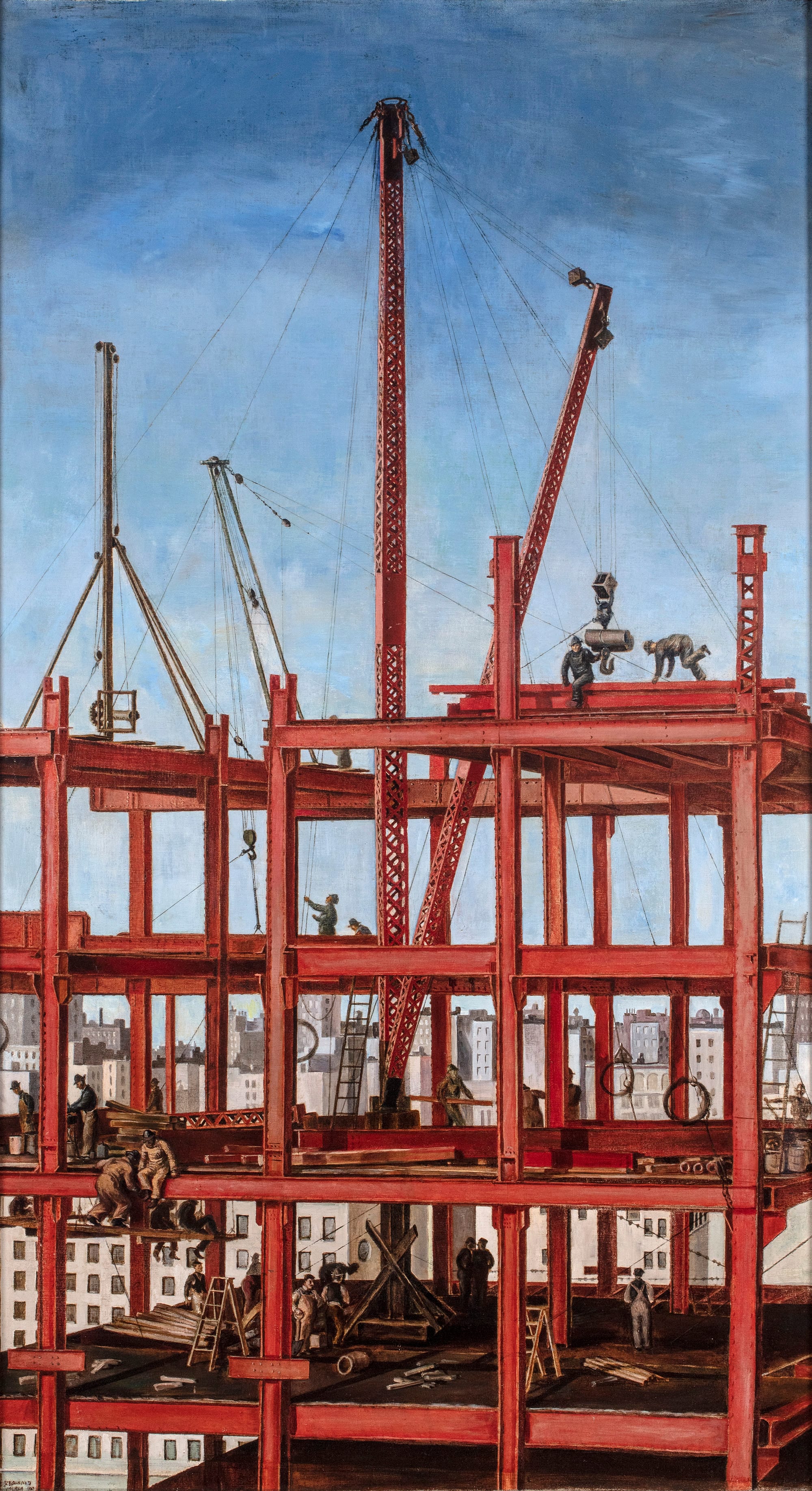 Reginald Marsh, "Construction, Steel Workers" (1924), oil on canvas (© 2021 Estate of Reginald Marsh / Art Students League, New York / Artists Rights Society (ARS) New York)